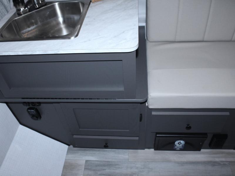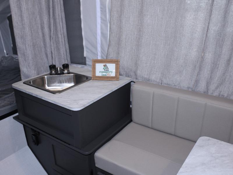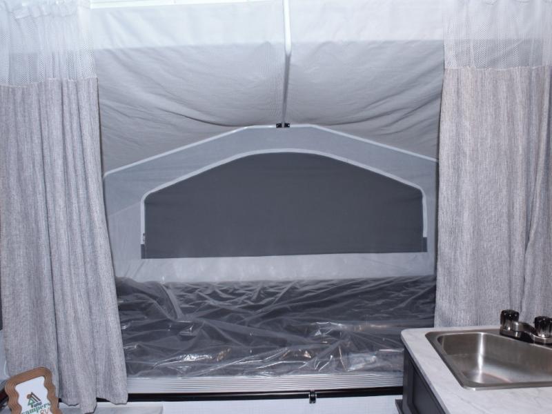 The 1640FT offers a cozy and flexible interior with two tent end beds, perfect for couples or small families. The L-shaped dinette with table gives you a great spot to enjoy meals, play games, or relax after a day of hiking—and it can even serve as sleeping space for a small guest or two little ones.