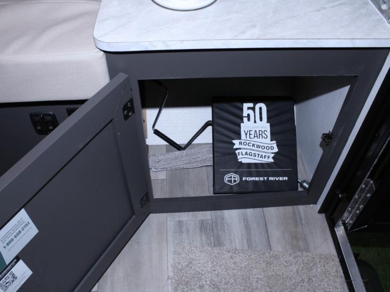 The 2025 Rockwood Freedom Series is built to go the distance, with standout construction features including a fiberglass laminated roof, leaf-spring axles with electric brakes, and nitrogen-filled balancing bead tires for smoother towing. Four stabilizer jacks with sand pads keep your camper secure at any site, while the power roof lift makes setup quick and easy.