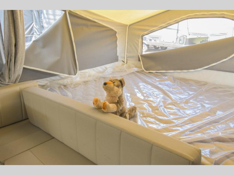 This compact camper will be perfect for outdoor trips to your favorite campground. There are two tent end beds for sleeping space, along with an L-shaped seat with a table for dining space. An extra guest or two little ones could even sleep here at night! The exterior griddle will let you make meals each day, and the 12V refrigerator will keep perishables fresh. This unit also includes an indoor sink so you can wash dishes and brush your teeth at night, and there is a 7' awning outdoors to enjoy some shade!