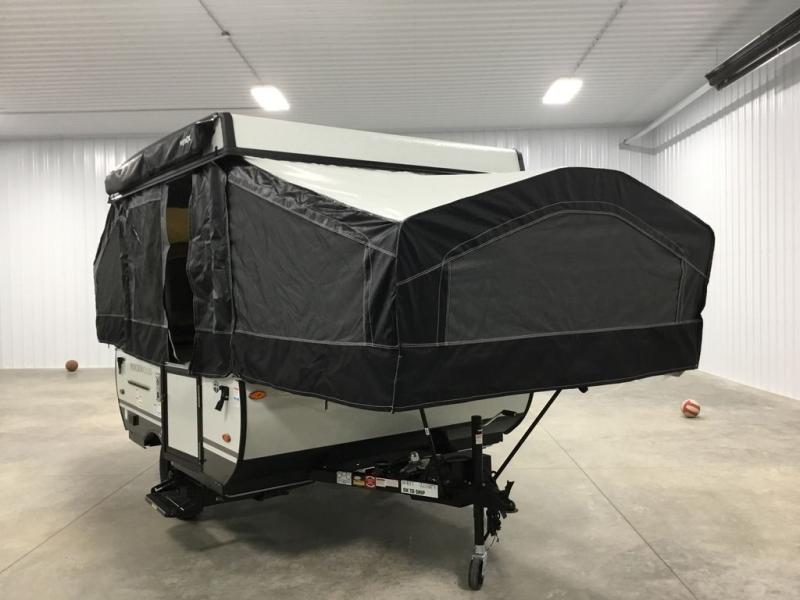 With any Rockwood Freedom Series by Forest River, you will enjoy added features to make each excursion one to remember. These folding pop-up campers feature a fiberglass laminated roof, wood plank flooring, and a Clay exterior with an alloy band. The leaf-spring axles, electric brakes, and balancing bead/nitrogen filled tires will make towing easier than ever, plus there are four stabilizer jacks with sand pads to help keep your unit secure. Each model also includes an awning with LED lighting outdoors, along with a one-piece screen door, two 20 lb. LP bottles, and a power roof lift to have you set up in no-time. Inside, the 15K under-bunk A/C and 20K BTU furnace will help keep you comfortable, and the Create-A-Breeze roof vent fan will keep the air moving!