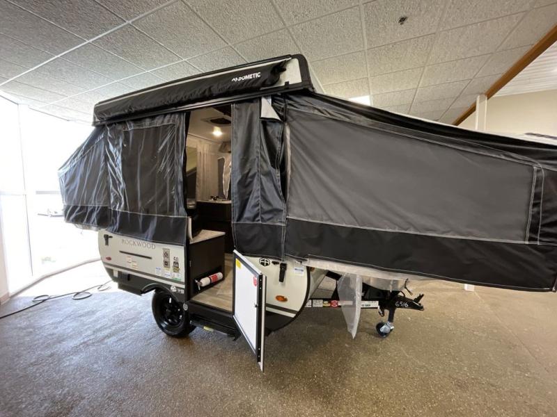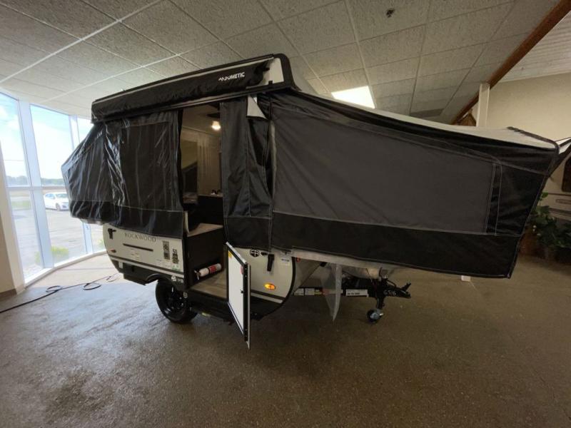 With any Rockwood Freedom Series by Forest River, you will enjoy added features to make each excursion one to remember. These folding pop-up campers feature a fiberglass laminated roof, wood plank flooring, and a Clay exterior with an alloy band. The leaf-spring axles, electric brakes, and balancing bead/nitrogen filled tires will make towing easier than ever, plus there are four stabilizer jacks with sand pads to help keep your unit secure. Each model also includes an awning with LED lighting outdoors, along with a one-piece screen door, two 20 lb. LP bottles, and a power roof lift to have you set up in no-time. Inside, the 15K under-bunk A/C and 20K BTU furnace will help keep you comfortable, and the Create-A-Breeze roof vent fan will keep the air moving!