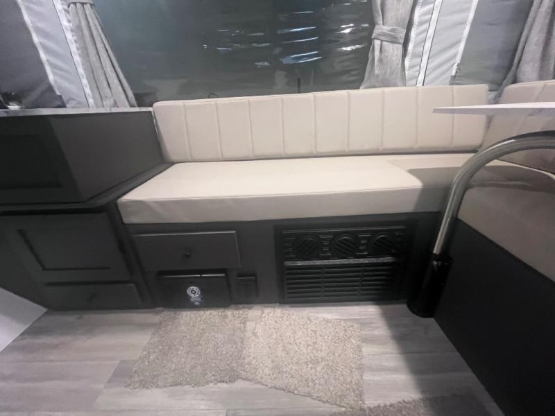 With any Rockwood Freedom Series by Forest River, you will enjoy added features to make each excursion one to remember. These folding pop-up campers feature a fiberglass laminated roof, wood plank flooring, and a Clay exterior with an alloy band. The leaf-spring axles, electric brakes, and balancing bead/nitrogen filled tires will make towing easier than ever, plus there are four stabilizer jacks with sand pads to help keep your unit secure. Each model also includes an awning with LED lighting outdoors, along with a one-piece screen door, two 20 lb. LP bottles, and a power roof lift to have you set up in no-time. Inside, the 15K under-bunk A/C and 20K BTU furnace will help keep you comfortable, and the Create-A-Breeze roof vent fan will keep the air moving!
