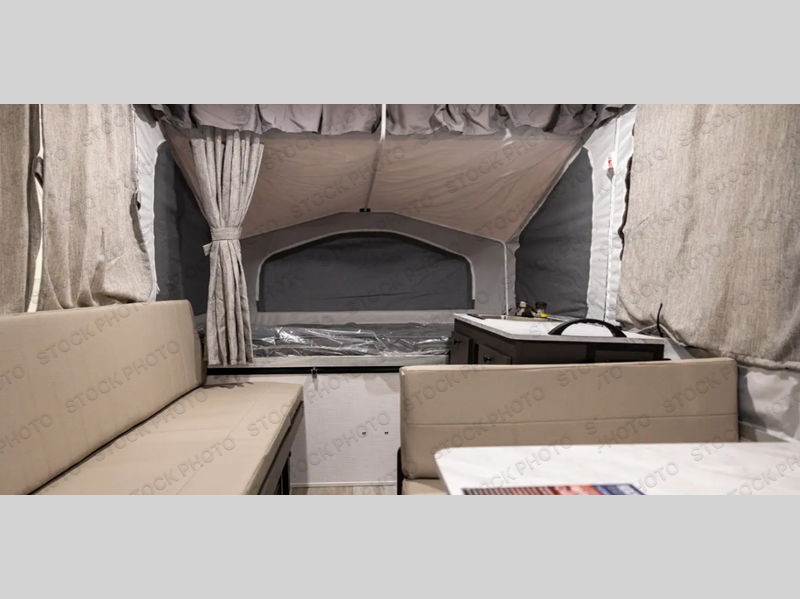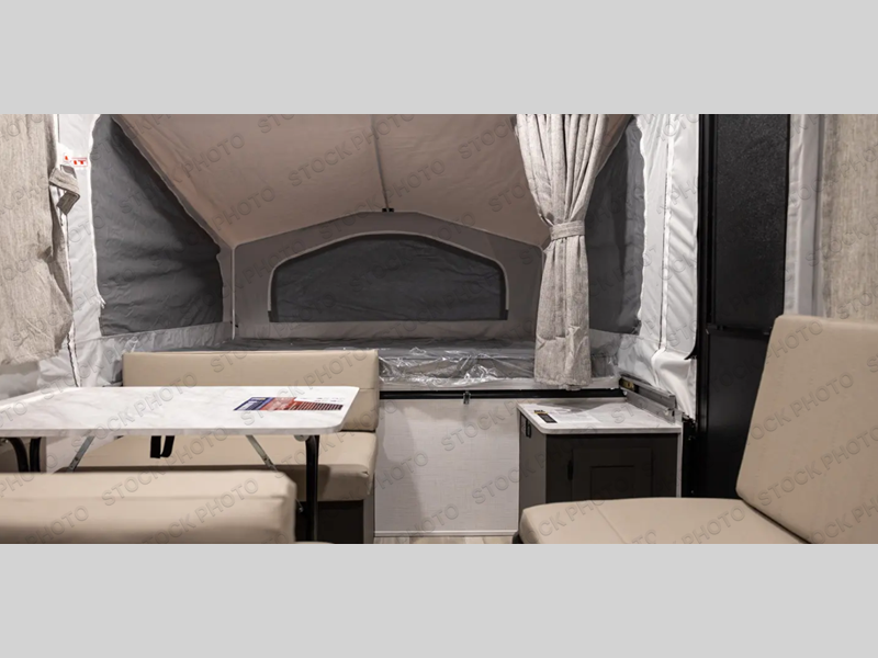 With any Rockwood Freedom Series by Forest River, you will enjoy added features to make each excursion one to remember. These folding pop-up campers feature a fiberglass laminated roof, wood plank flooring, and a Clay exterior with an alloy band. The leaf-spring axles, electric brakes, and balancing bead/nitrogen filled tires will make towing easier than ever, plus there are four stabilizer jacks with sand pads to help keep your unit secure. Each model also includes an awning with LED lighting outdoors, along with a one-piece screen door, two 20 lb. LP bottles, and a power roof lift to have you set up in no-time. Inside, the 15K under-bunk A/C and 20K BTU furnace will help keep you comfortable, and the Create-A-Breeze roof vent fan will keep the air moving!