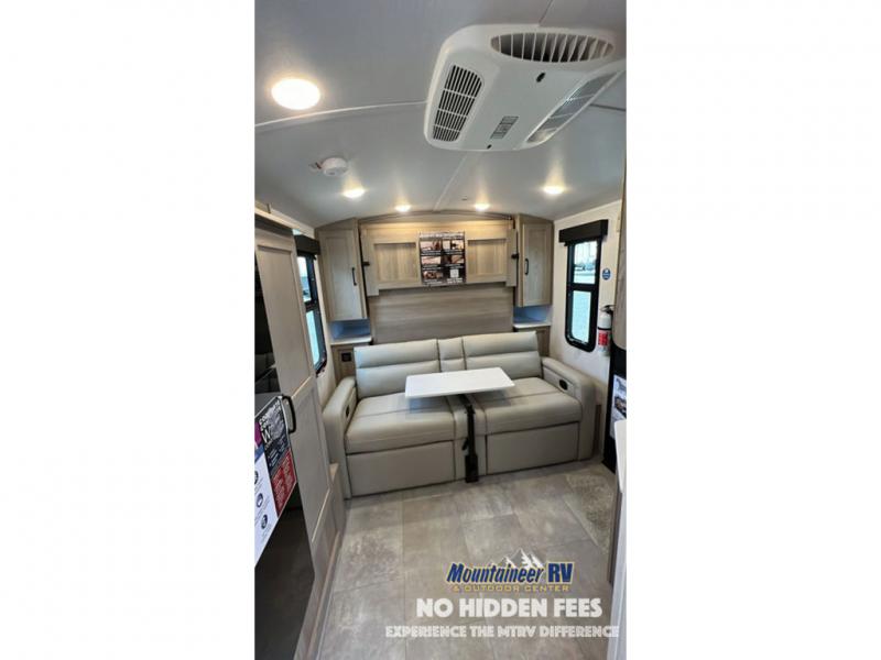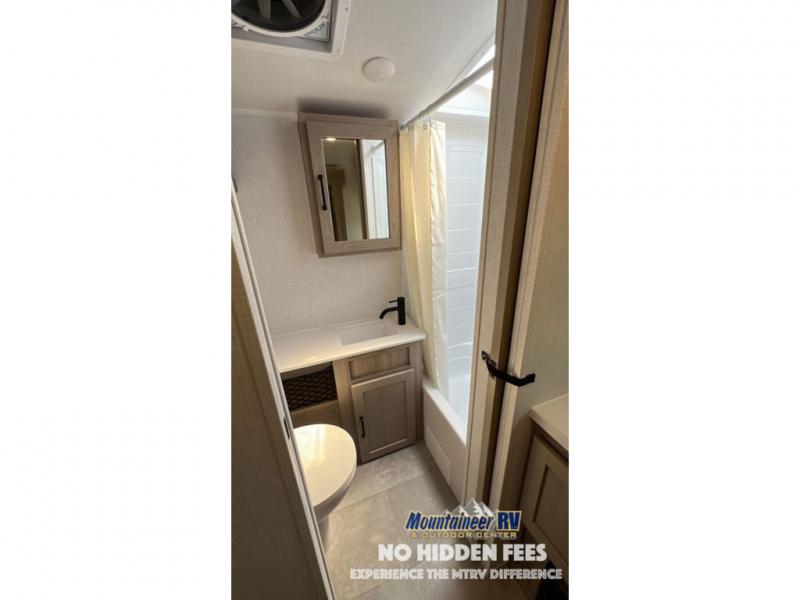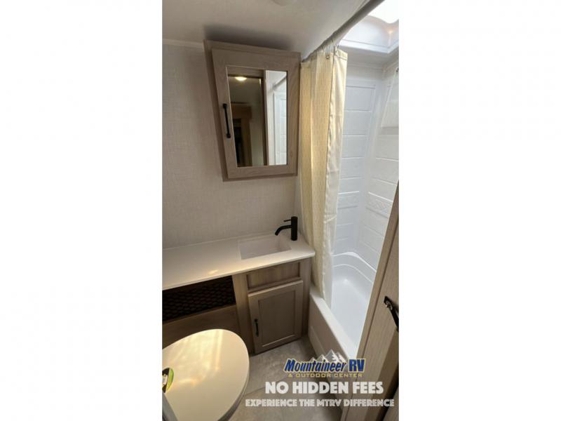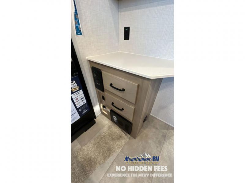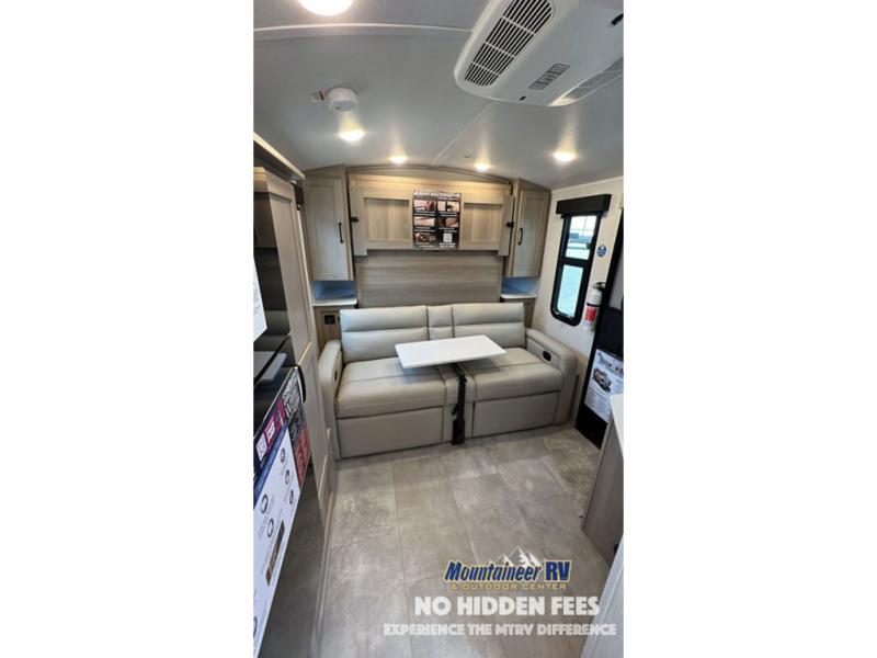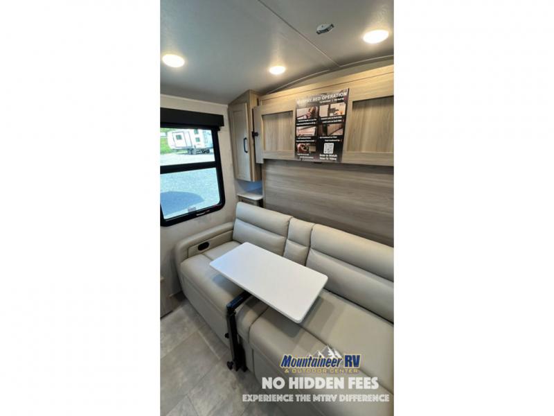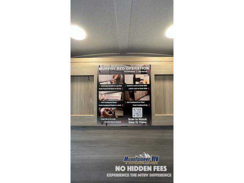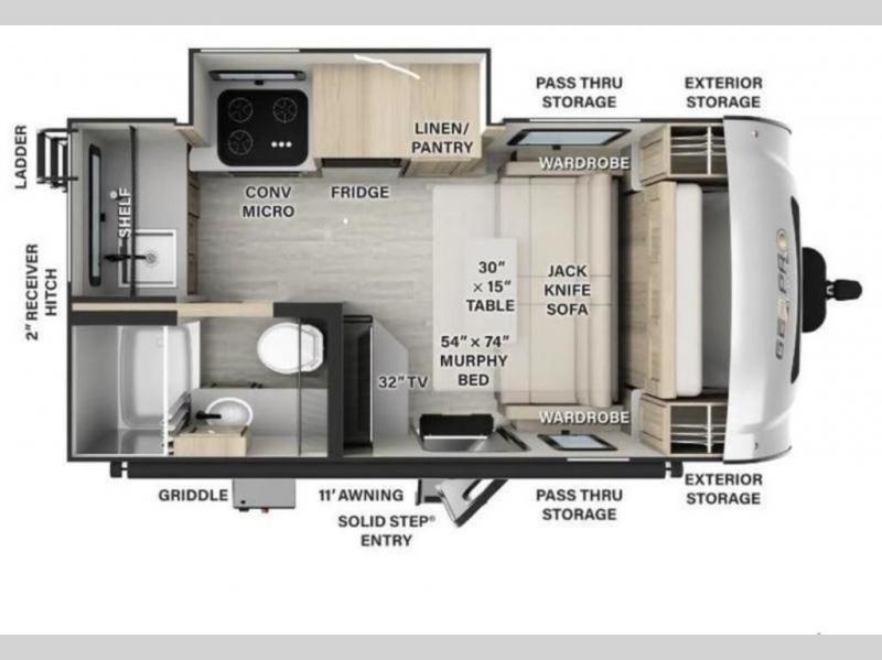 Pack your bags and head to your local state park in this travel trailer! You will love the extra space you have thanks to the kitchen slide out, and the jack knife sofa can fold away at night so you can sleep on the Murphy bed! This model includes a 32" 12V TV to keep you entertained on those rainy days, and the full bath will let you get cleaned up if you decide to hike despite the weather. There will be plenty of storage space for your belongings and gear since there is a pass-through storage and additional exterior storage, and don't overlook the exterior griddle for breakfast outdoors!