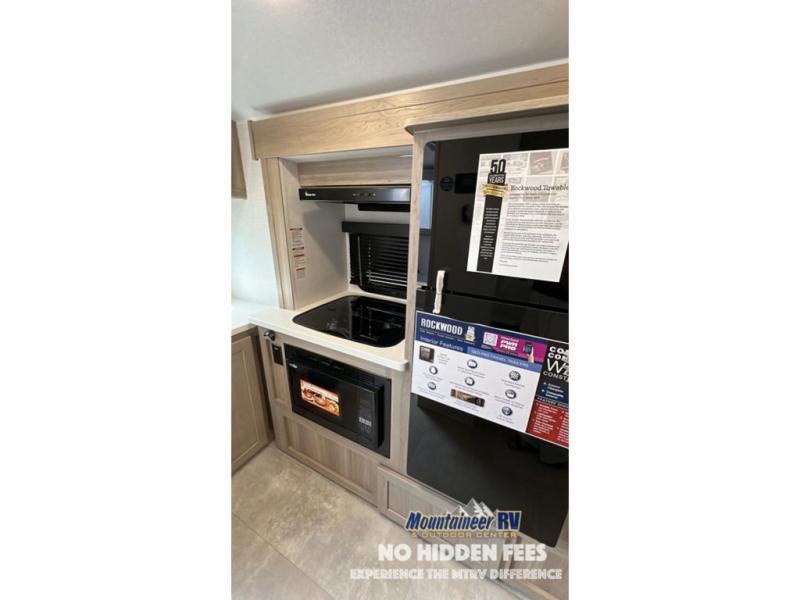 With any Rockwood GEO Pro travel trailer by Forest River you will enjoy easy towing, durable construction, and off-road capabilities with larger 15" tires and a lift kit! Each model is constructed with complete composite wall construction for added strength and durability, and the torsion axle, Rubber-Ryde suspension will make towing easier than ever. Inside, you'll find sleek roller shades for added privacy, a 12V refrigerator and a microwave, plus a 20,000 BTU furnace to keep you warm during the colder camping months.