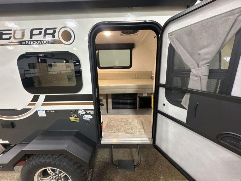 With any Rockwood GEO Pro travel trailer by Forest River you will enjoy easy towing, durable construction, and off-road capabilities with larger 15" tires and a lift kit! Each model is constructed with complete composite wall construction for added strength and durability, and the torsion axle, Rubber-Ryde suspension will make towing easier than ever. Inside, you'll find sleek roller shades for added privacy, a 12V refrigerator and a microwave, plus a 20,000 BTU furnace to keep you warm during the colder camping months.