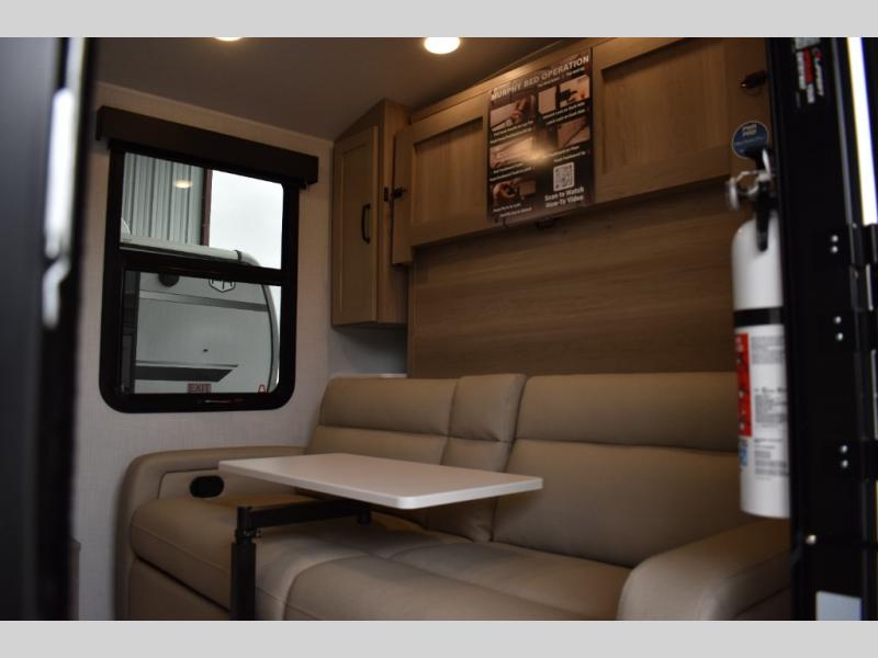 Pack your bags and head to your local state park in this travel trailer! You will love the extra space you have thanks to the kitchen slide out, and the jack knife sofa can fold away at night so you can sleep on the Murphy bed! This model includes a 32" 12V TV to keep you entertained on those rainy days, and the full bath will let you get cleaned up if you decide to hike despite the weather. There will be plenty of storage space for your belongings and gear since there is a pass-through storage and additional exterior storage, and don't overlook the exterior griddle for breakfast outdoors!