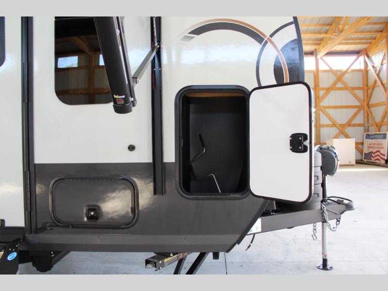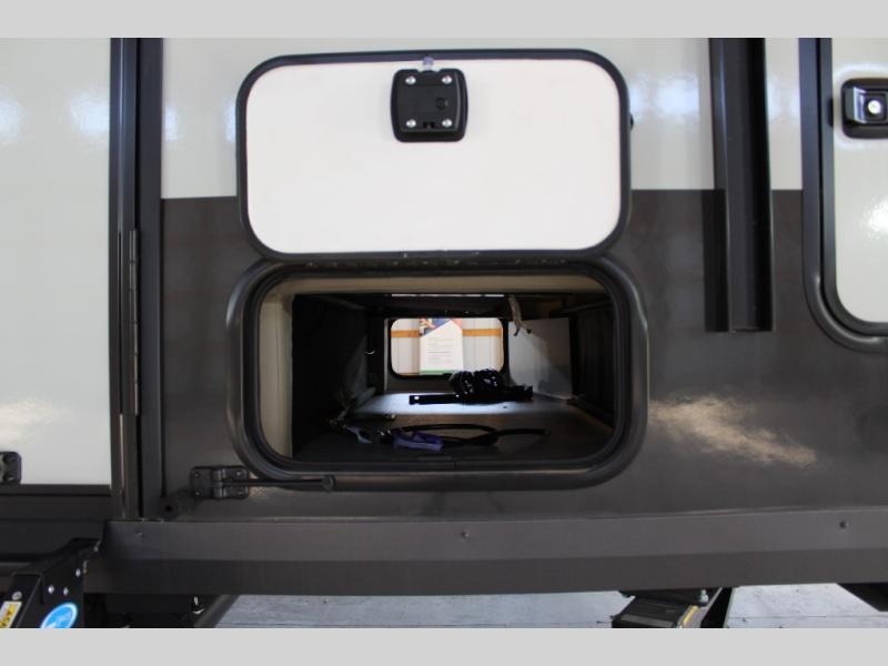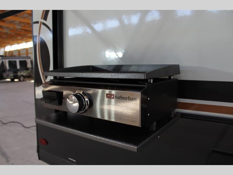 Pack your bags and head to your local state park in this travel trailer! You will love the extra space you have thanks to the kitchen slide out, and the jack knife sofa can fold away at night so you can sleep on the Murphy bed! This model includes a 32" 12V TV to keep you entertained on those rainy days, and the full bath will let you get cleaned up if you decide to hike despite the weather. There will be plenty of storage space for your belongings and gear since there is a pass-through storage and additional exterior storage, and don't overlook the exterior griddle for breakfast outdoors!