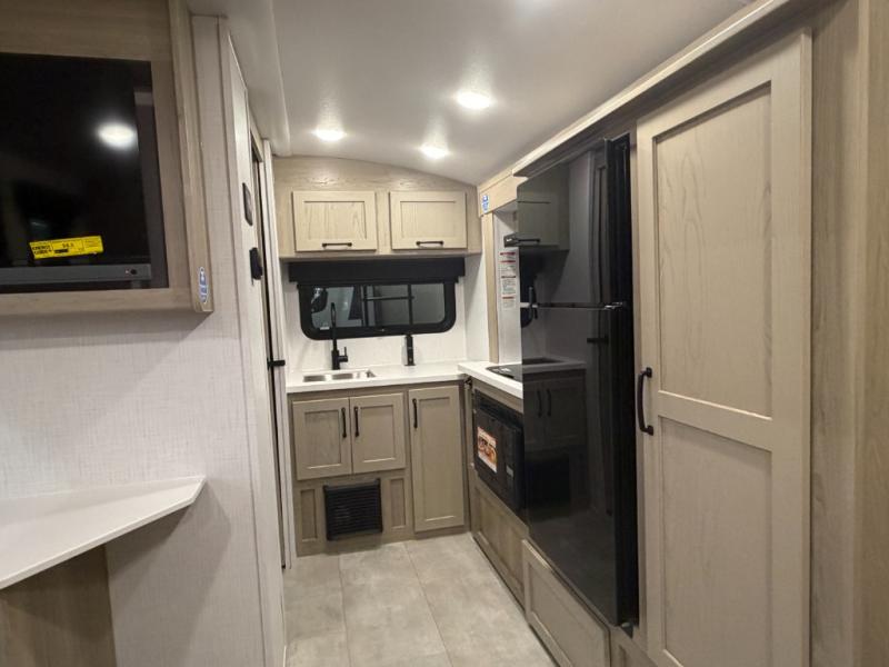 Pack your bags and head to your local state park in this travel trailer! You will love the extra space you have thanks to the kitchen slide out, and the jack knife sofa can fold away at night so you can sleep on the Murphy bed! This model includes a 32" 12V TV to keep you entertained on those rainy days, and the full bath will let you get cleaned up if you decide to hike despite the weather. There will be plenty of storage space for your belongings and gear since there is a pass-through storage and additional exterior storage, and don't overlook the exterior griddle for breakfast outdoors!