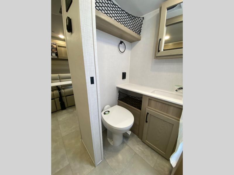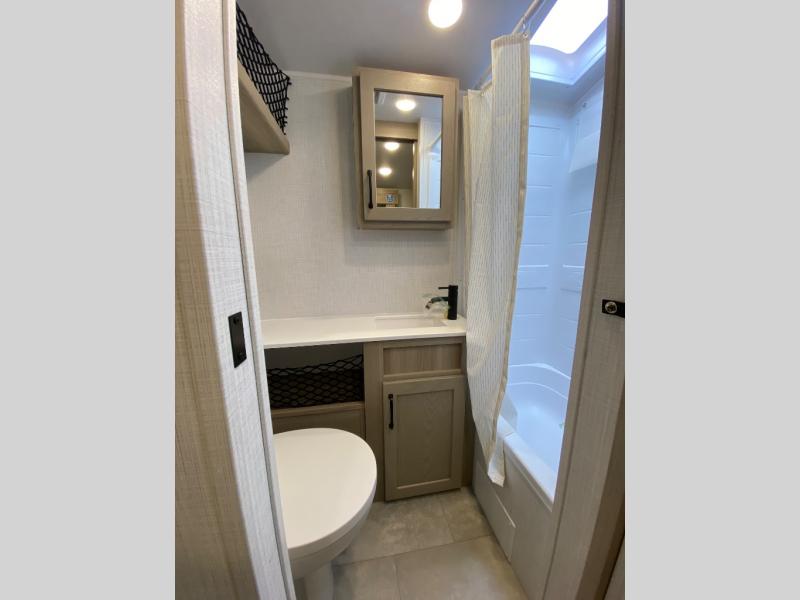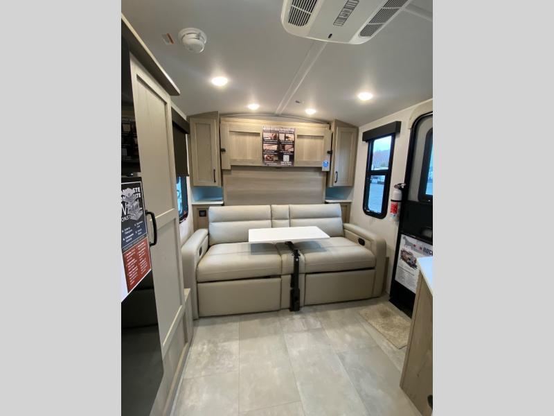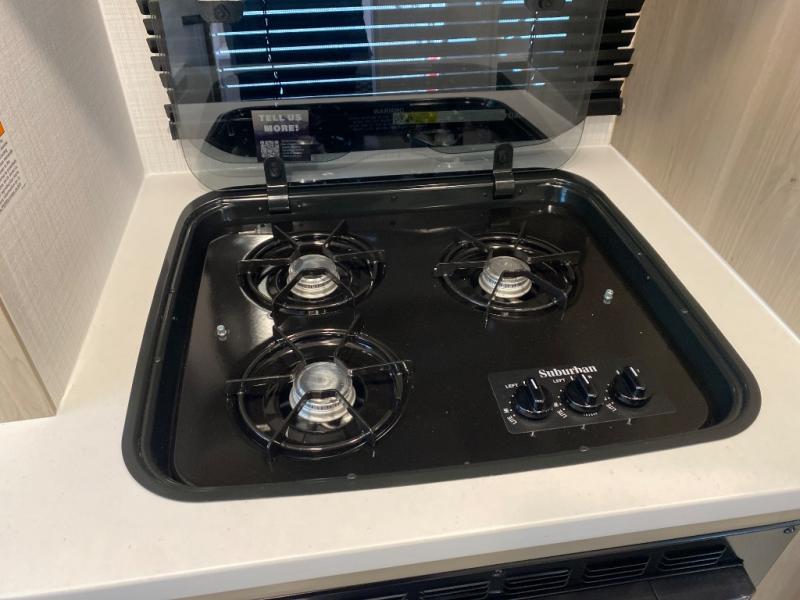 Pack your bags and head to your local state park in this travel trailer! You will love the extra space you have thanks to the kitchen slide out, and the jack knife sofa can fold away at night so you can sleep on the Murphy bed! This model includes a 32" 12V TV to keep you entertained on those rainy days, and the full bath will let you get cleaned up if you decide to hike despite the weather. There will be plenty of storage space for your belongings and gear since there is a pass-through storage and additional exterior storage, and don't overlook the exterior griddle for breakfast outdoors!