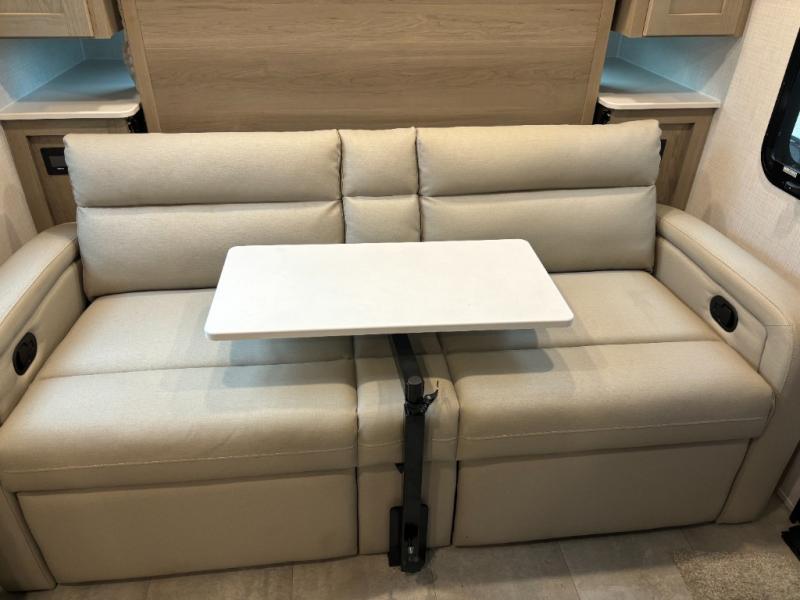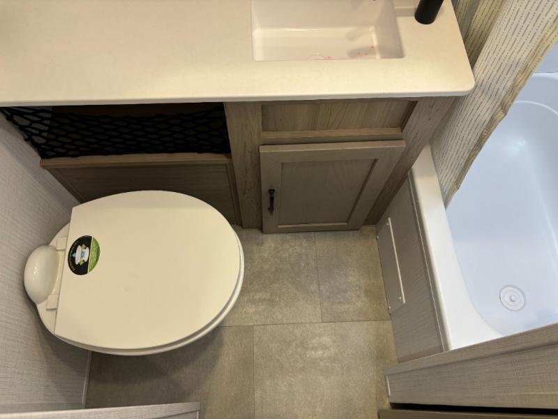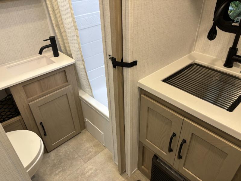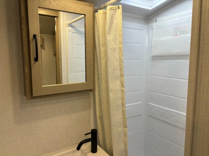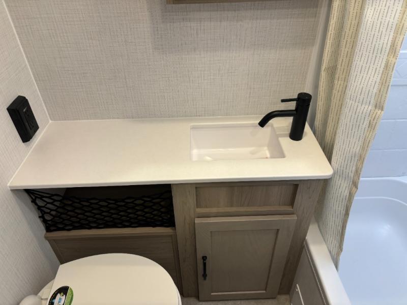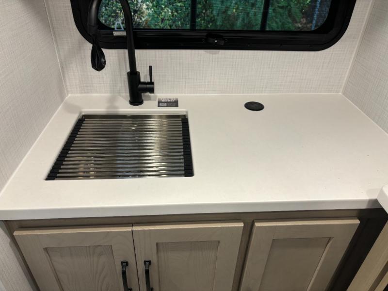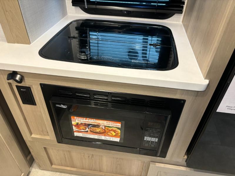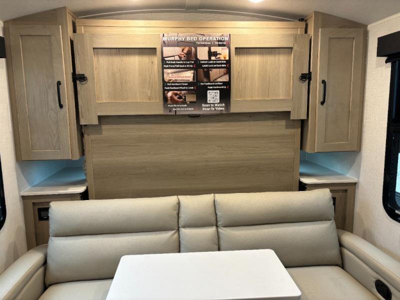 Pack your bags and head to your local state park in this travel trailer! You will love the extra space you have thanks to the kitchen slide out, and the jack knife sofa can fold away at night so you can sleep on the Murphy bed! This model includes a 32" 12V TV to keep you entertained on those rainy days, and the full bath will let you get cleaned up if you decide to hike despite the weather. There will be plenty of storage space for your belongings and gear since there is a pass-through storage and additional exterior storage, and don't overlook the exterior griddle for breakfast outdoors!