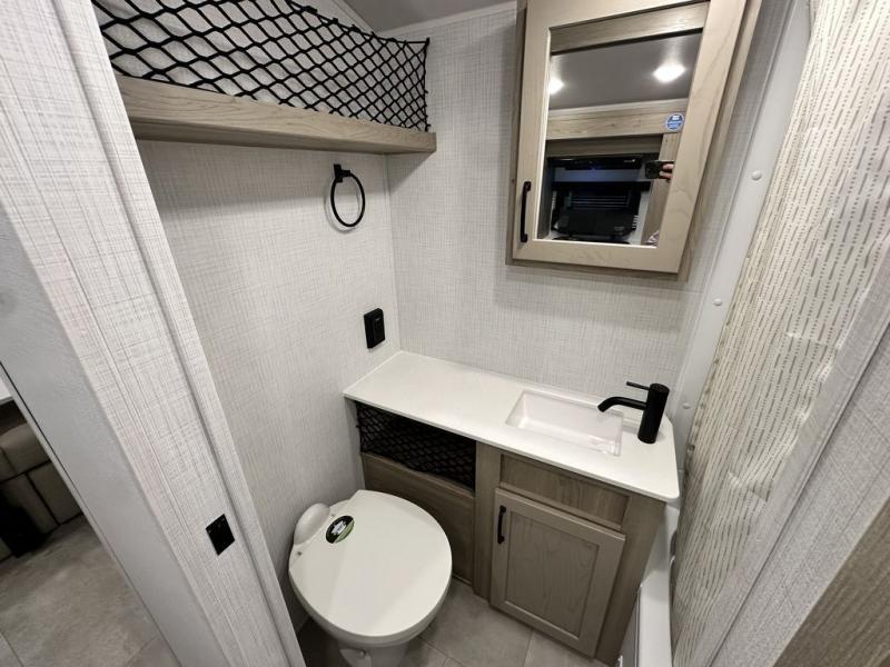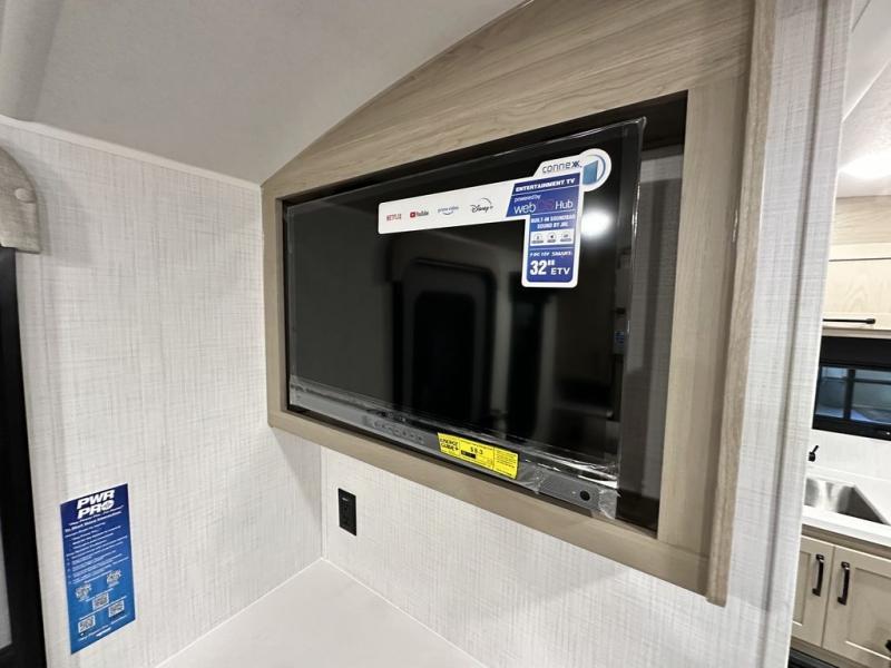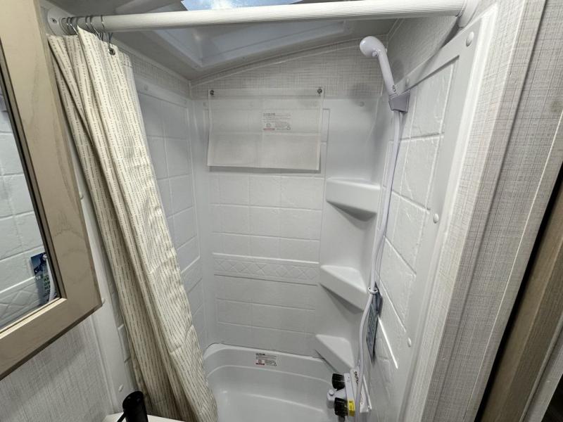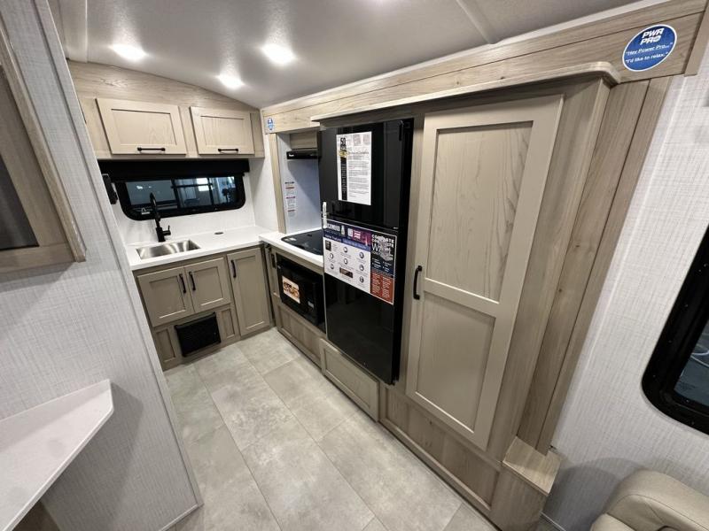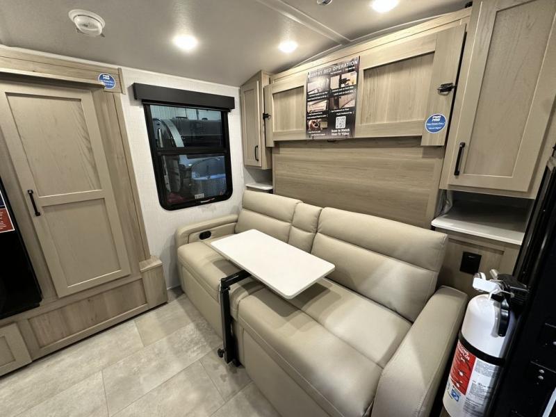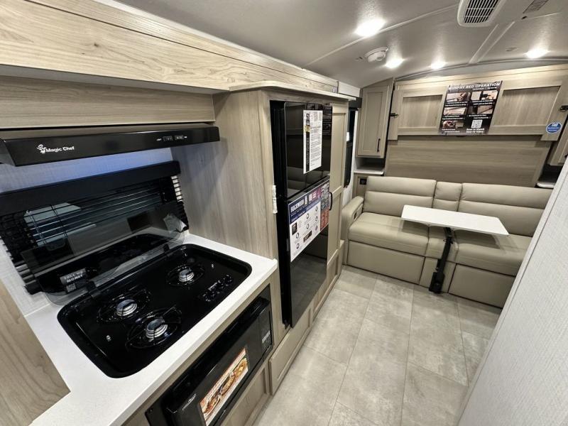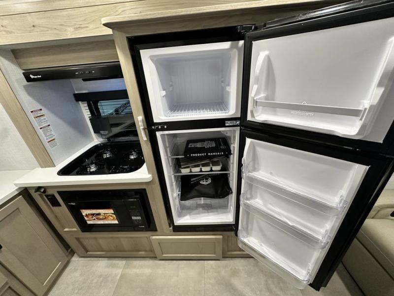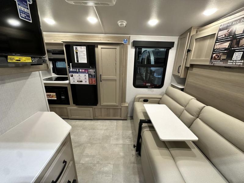 Pack your bags and head to your local state park in this travel trailer! You will love the extra space you have thanks to the kitchen slide out, and the jack knife sofa can fold away at night so you can sleep on the Murphy bed! This model includes a 32" 12V TV to keep you entertained on those rainy days, and the full bath will let you get cleaned up if you decide to hike despite the weather. There will be plenty of storage space for your belongings and gear since there is a pass-through storage and additional exterior storage, and don't overlook the exterior griddle for breakfast outdoors!