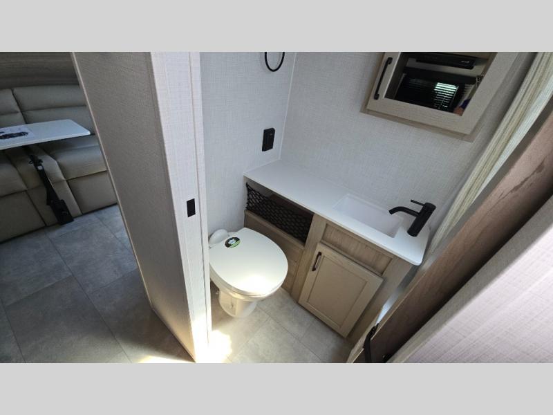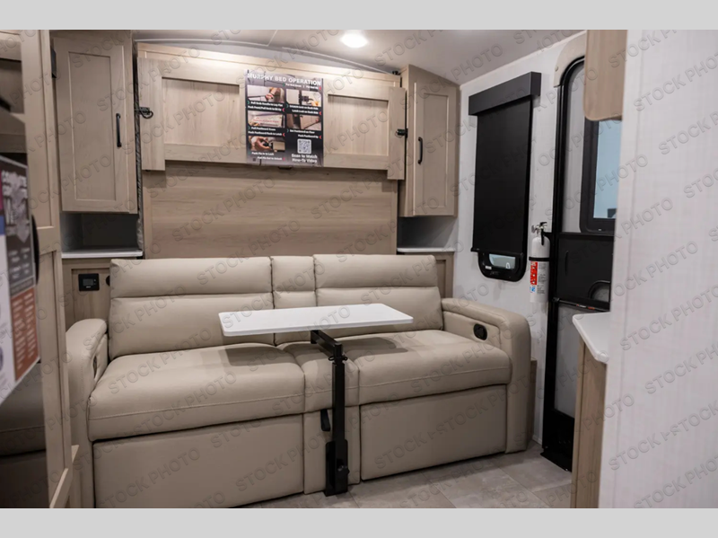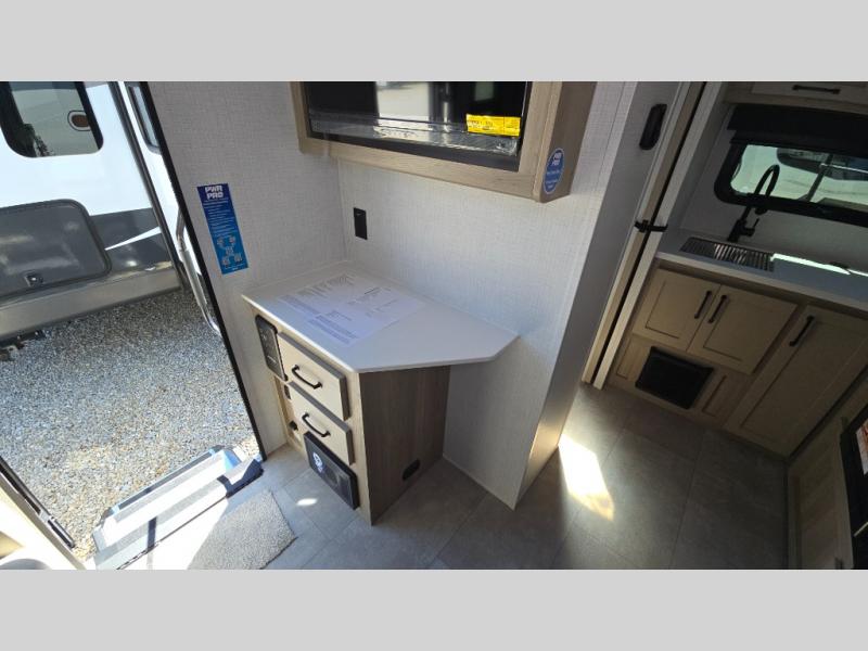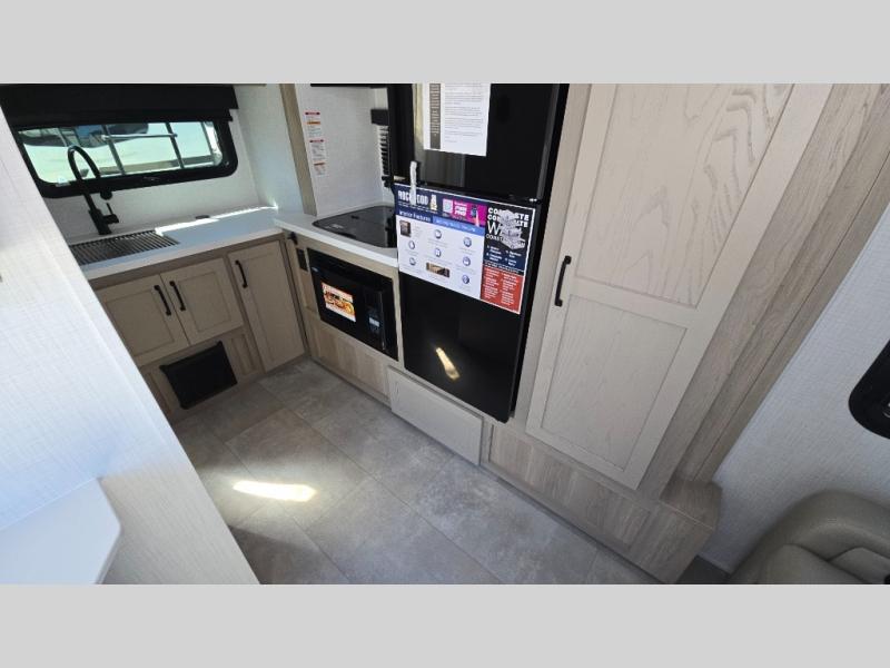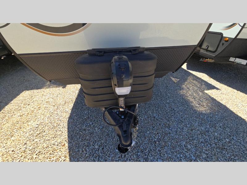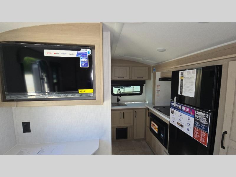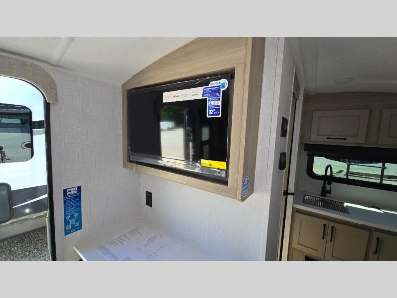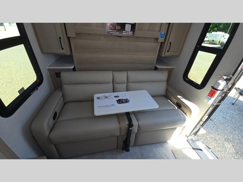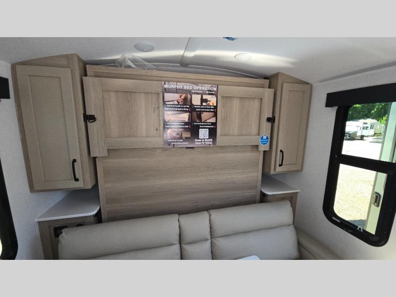 Pack your bags and head to your local state park in this travel trailer! You will love the extra space you have thanks to the kitchen slide out, and the jack knife sofa can fold away at night so you can sleep on the Murphy bed! This model includes a 32" 12V TV to keep you entertained on those rainy days, and the full bath will let you get cleaned up if you decide to hike despite the weather. There will be plenty of storage space for your belongings and gear since there is a pass-through storage and additional exterior storage, and don't overlook the exterior griddle for breakfast outdoors!
