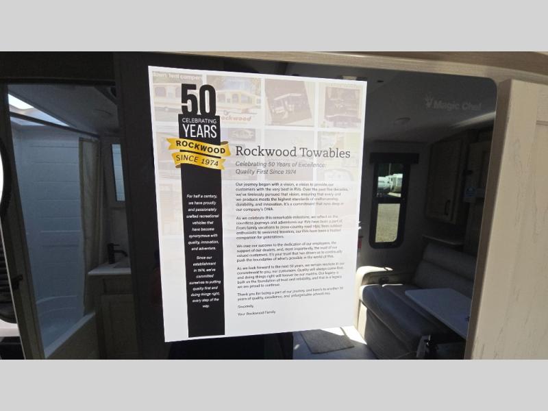 With any Rockwood GEO Pro travel trailer by Forest River you will enjoy easy towing, durable construction, and off-road capabilities with larger 15" tires and a lift kit! Each model is constructed with complete composite wall construction for added strength and durability, and the torsion axle, Rubber-Ryde suspension will make towing easier than ever. Inside, you'll find sleek roller shades for added privacy, a 12V refrigerator and a microwave, plus a 20,000 BTU furnace to keep you warm during the colder camping months.