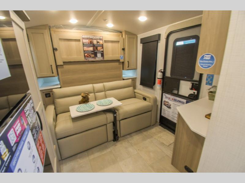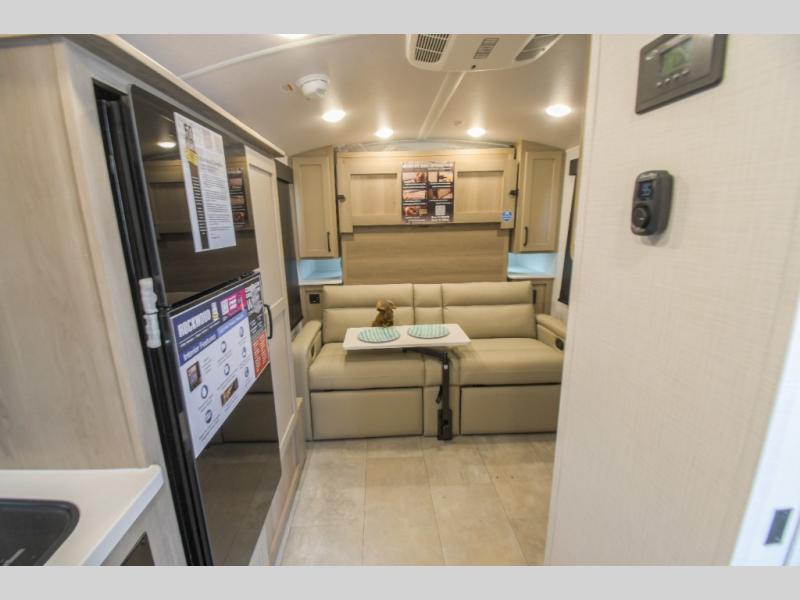 Pack your bags and head to your local state park in this travel trailer! You will love the extra space you have thanks to the kitchen slide out, and the jack knife sofa can fold away at night so you can sleep on the Murphy bed! This model includes a 32" 12V TV to keep you entertained on those rainy days, and the full bath will let you get cleaned up if you decide to hike despite the weather. There will be plenty of storage space for your belongings and gear since there is a pass-through storage and additional exterior storage, and don't overlook the exterior griddle for breakfast outdoors!