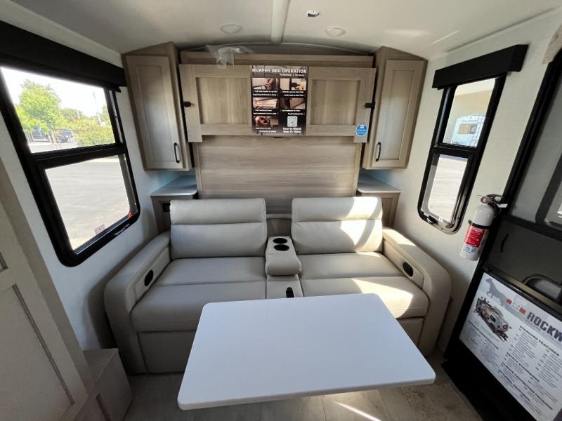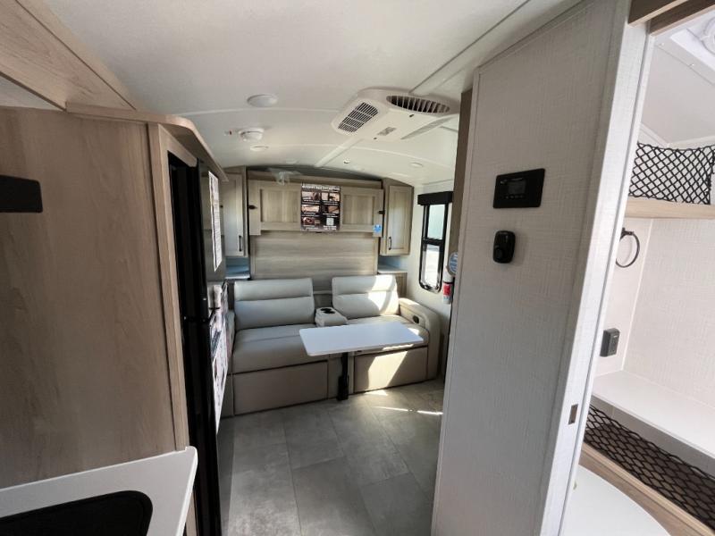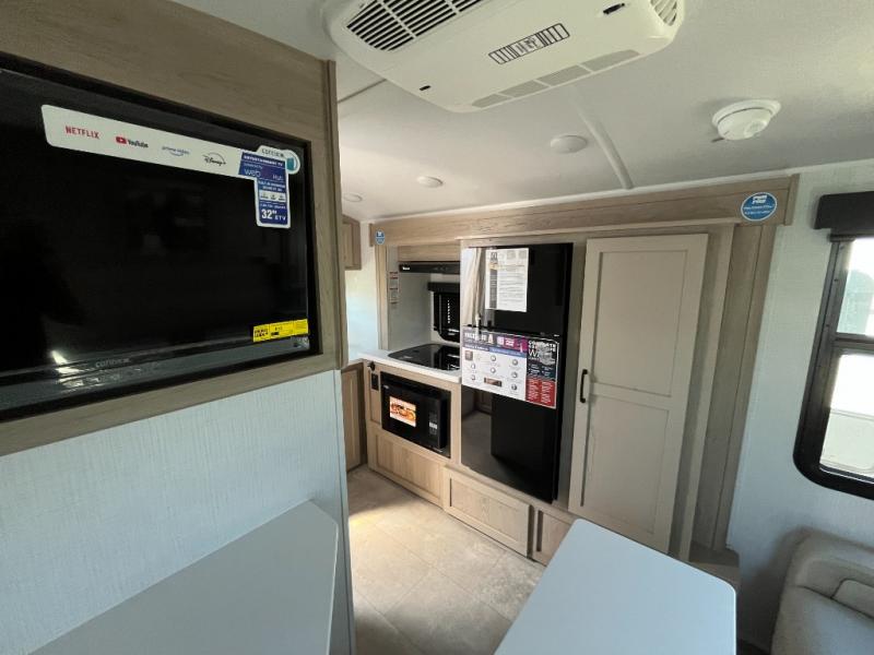 Pack your bags and head to your local state park in this travel trailer! You will love the extra space you have thanks to the kitchen slide out, and the jack knife sofa can fold away at night so you can sleep on the Murphy bed! This model includes a 32" 12V TV to keep you entertained on those rainy days, and the full bath will let you get cleaned up if you decide to hike despite the weather. There will be plenty of storage space for your belongings and gear since there is a pass-through storage and additional exterior storage, and don't overlook the exterior griddle for breakfast outdoors!