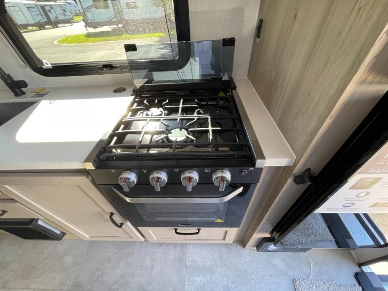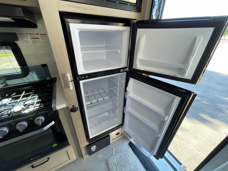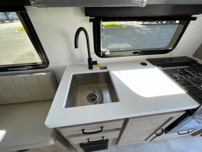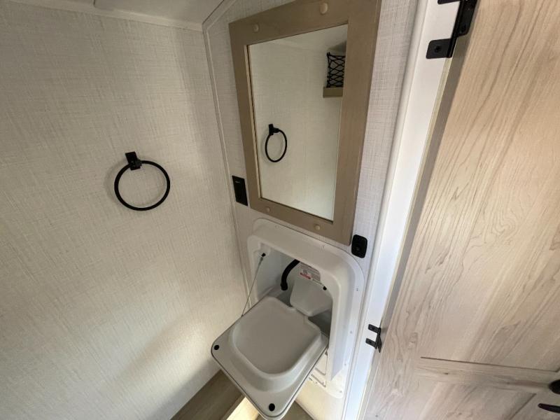 You'll love every minute spent in this versatile travel trailer! There is a unique rear entry with Solid Step entry steps, a front 54" x 74" Murphy bed to sleep on, plus a shower to freshen up each day. There is also a private toilet and flip-down bath sink so you both can get ready for bed at once. When you wake up, you can easily fold up the Murphy bed so you can dine at the booth dinette. The exterior of this model is just as accommodating as the interior with its 10' power awning, exterior griddle, convenient storage, and On-The-Go ladder!