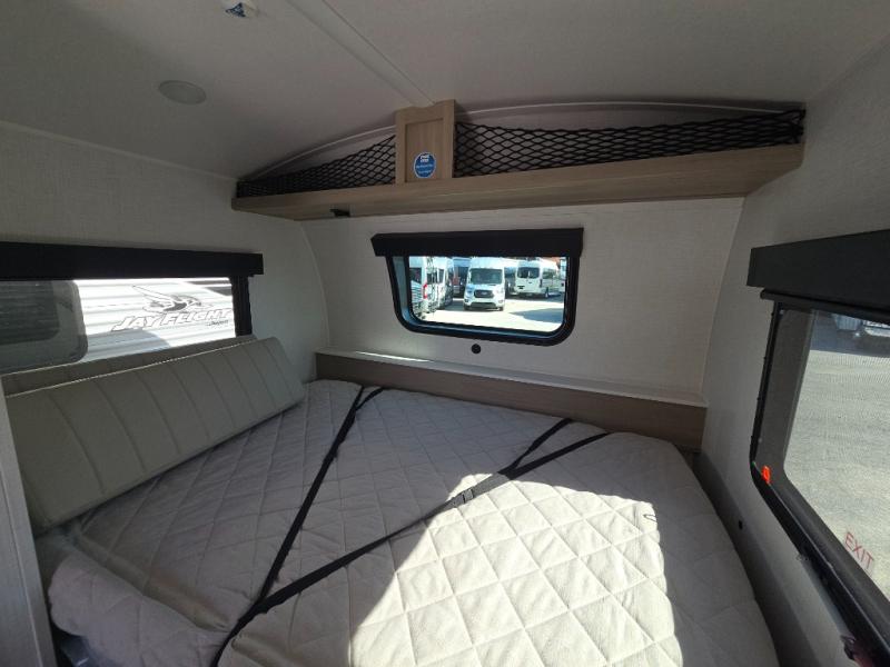 This flexible floorplan features a Murphy bed that folds away during the day to create an open living area with a comfortable dinette. At night, the bed easily lowers to provide a restful sleeping space. A front shelf adds convenient storage for personal items.
