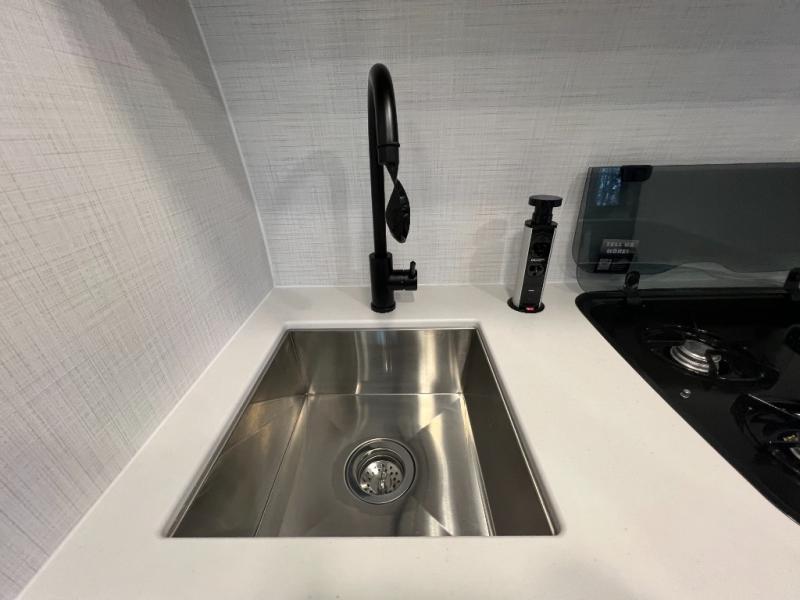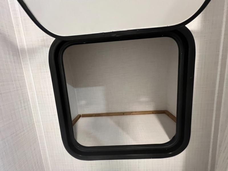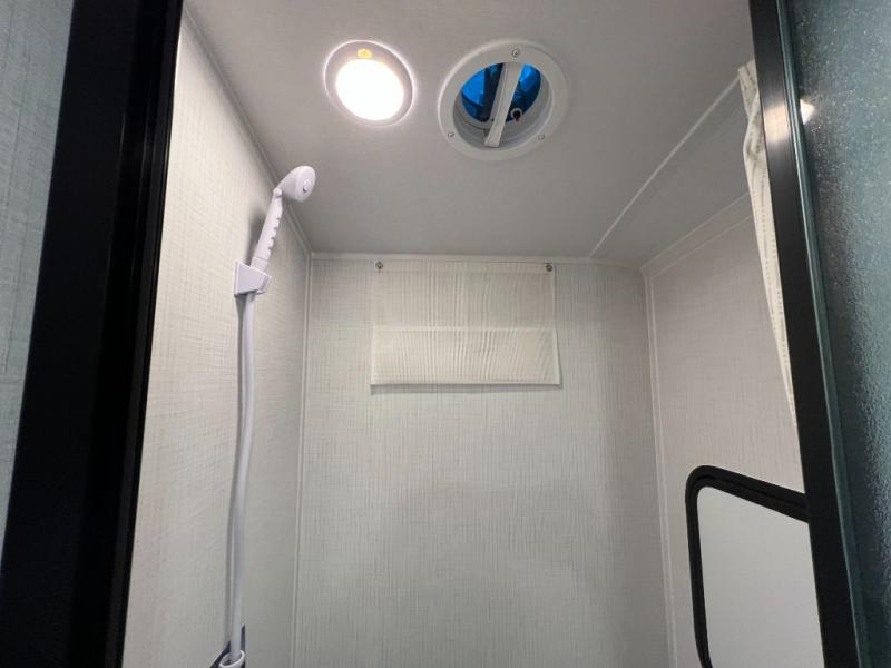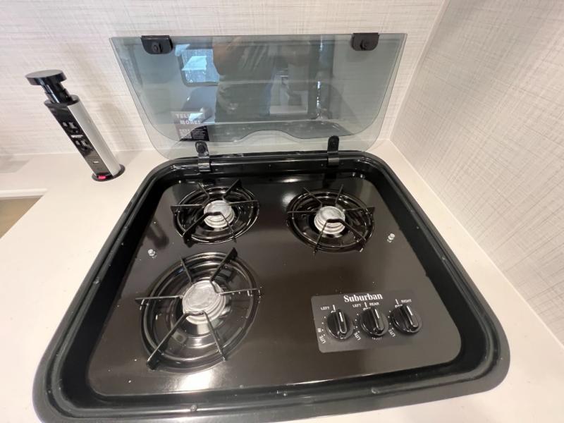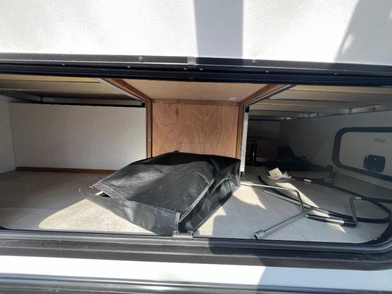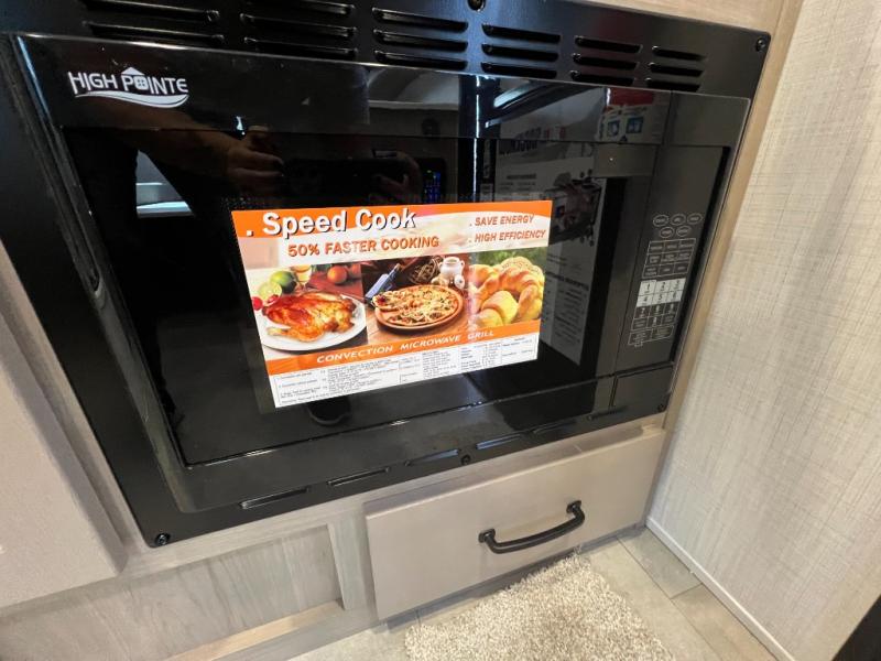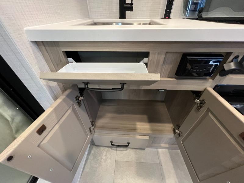 It won't be hard to find comfort in this travel trailer. It may be smaller on size, but it doesn't skim on features. The twin beds convert to a king-size bed for your comfort, and there is even a 32" 12V TV to enjoy in the evenings. The kitchen includes a three burner cooktop, a convection microwave, plus a 12V refrigerator for perishables. You'll find overhead compartments for your valuables and exterior storage for your hiking gear!