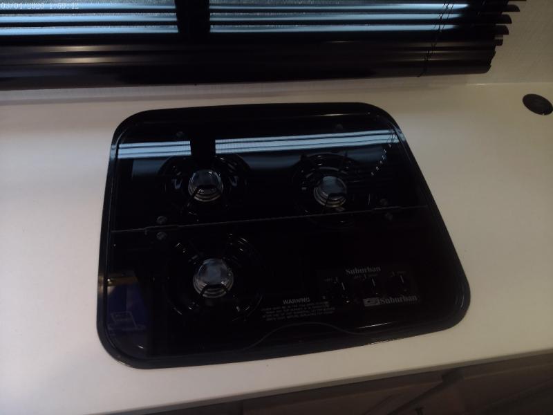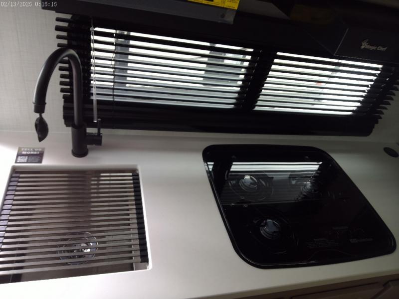 You'll love camping in this travel trailer that can sleep five each night. There is a front U-shaped dinette, a rear 54" x 74" full-size bed, plus a 26" x 80" flip-up bunk! A three burner cooktop and microwave oven let you create your best meals, and there is a 15' power awning and an exterior griddle if you want to cook outdoors. The full bath gives you privacy when freshening up after a day outdoors, and you'll find plenty of storage space in this unit, including in the overhead cabinets and the exterior pass-thru storage!