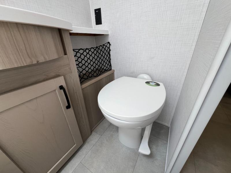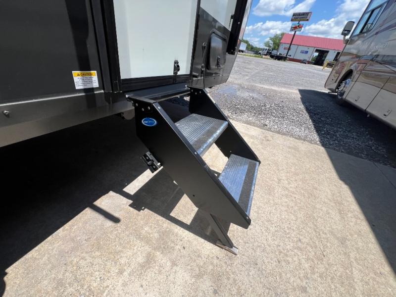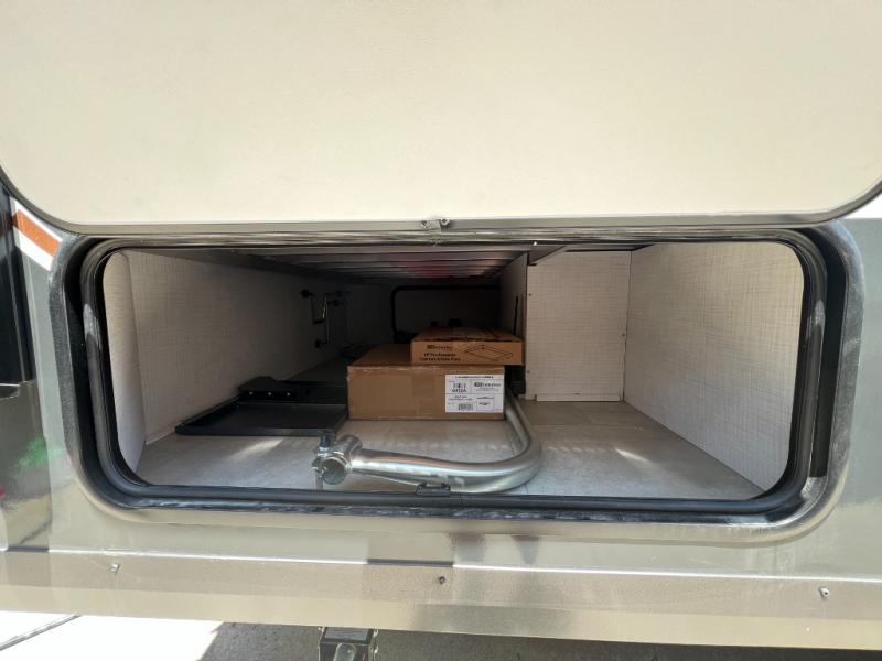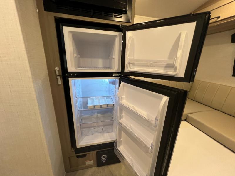 You'll love camping in this travel trailer that can sleep five each night. There is a front U-shaped dinette, a rear 54" x 74" full-size bed, plus a 26" x 80" flip-up bunk! A three burner cooktop and microwave oven let you create your best meals, and there is a 15' power awning and an exterior griddle if you want to cook outdoors. The full bath gives you privacy when freshening up after a day outdoors, and you'll find plenty of storage space in this unit, including in the overhead cabinets and the exterior pass-thru storage!