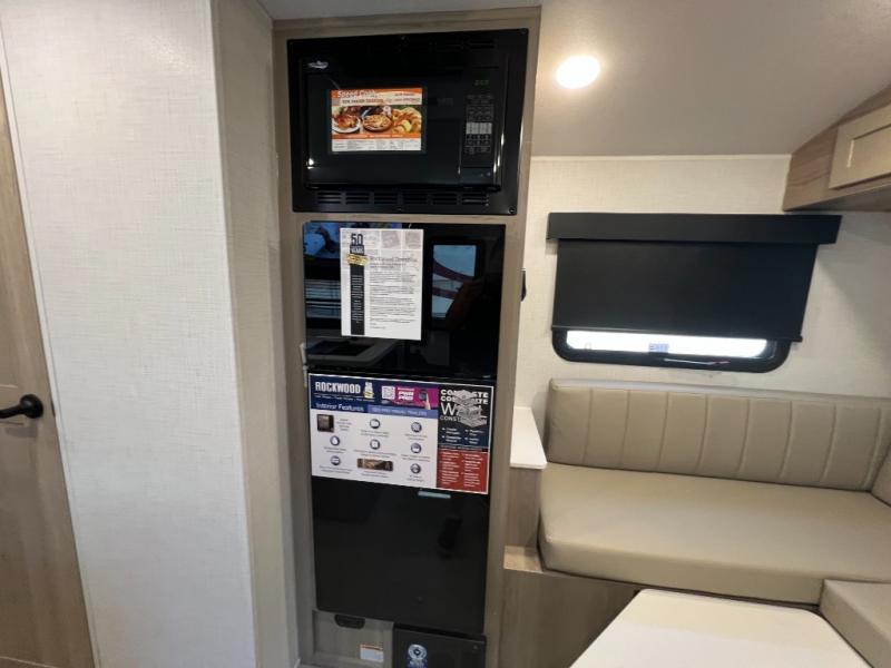 With any Rockwood GEO Pro travel trailer by Forest River you will enjoy easy towing, durable construction, and off-road capabilities with larger 15" tires and a lift kit! Each model is constructed with complete composite wall construction for added strength and durability, and the torsion axle, Rubber-Ryde suspension will make towing easier than ever. Inside, you'll find sleek roller shades for added privacy, a 12V refrigerator and a microwave, plus a 20,000 BTU furnace to keep you warm during the colder camping months.