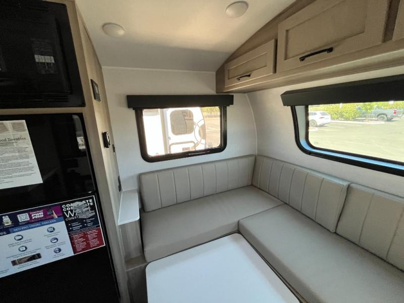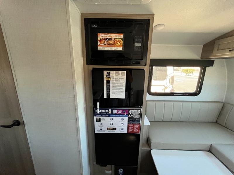With any Rockwood GEO Pro travel trailer by Forest River you will enjoy easy towing, durable construction, and off-road capabilities with larger 15" tires and a lift kit! Each model is constructed with complete composite wall construction for added strength and durability, and the torsion axle, Rubber-Ryde suspension will make towing easier than ever. Inside, you'll find sleek roller shades for added privacy, a 12V refrigerator and a microwave, plus a 20,000 BTU furnace to keep you warm during the colder camping months.