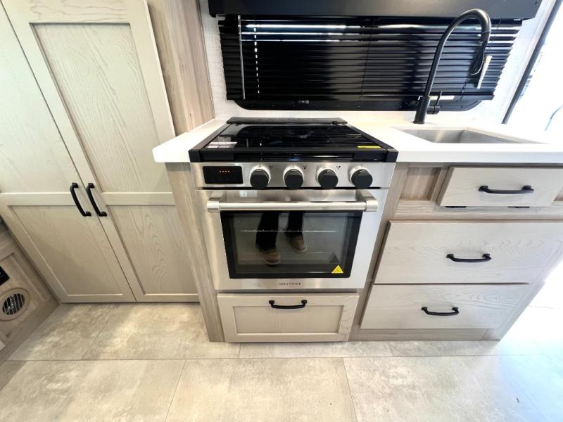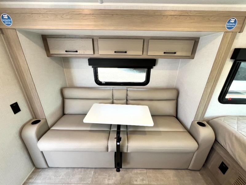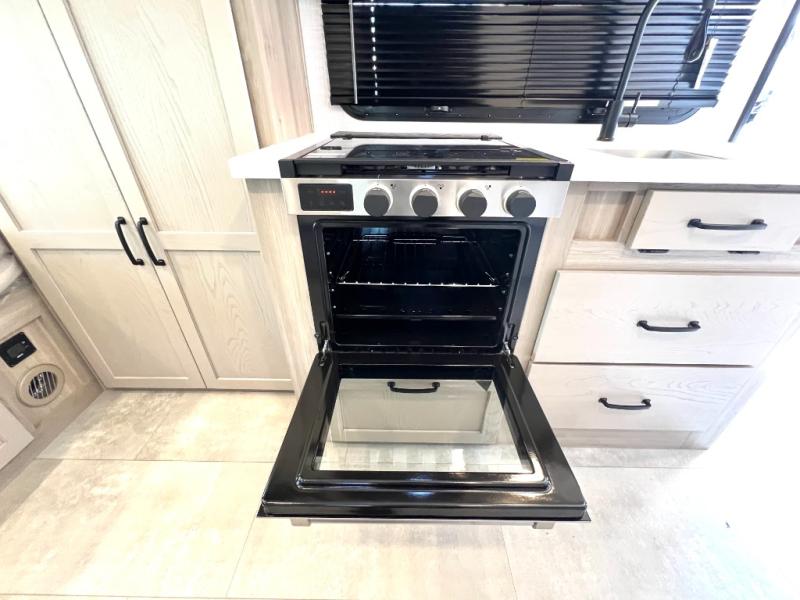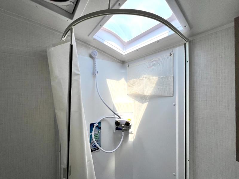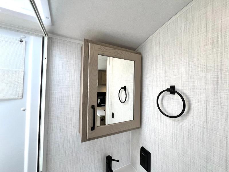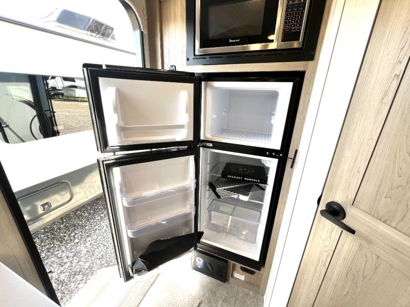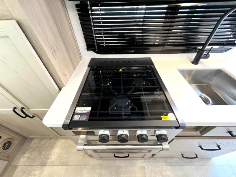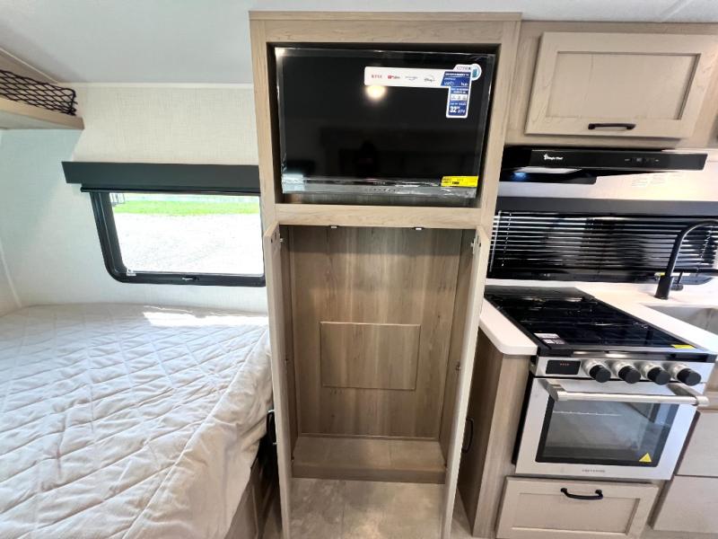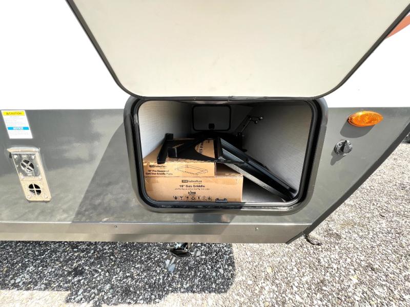 This is the perfect couple's trailer, so sneak away for a weekend in the woods. There is a 72" sofa with cupholders with a table that will be perfect for meals times and relaxing. This model includes a 32" 12V TV to keep you busy on those rainy days, and the queen bed will provide a great night's rest. This model also includes an outside griddle and an 11' power awning so you can enjoy those nice days outdoors!