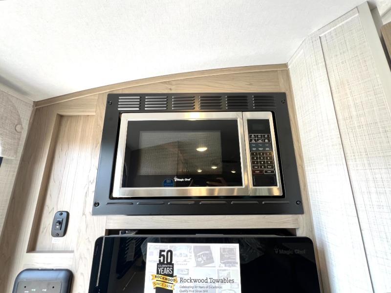 With any Rockwood GEO Pro travel trailer by Forest River you will enjoy easy towing, durable construction, and off-road capabilities with larger 15" tires and a lift kit! Each model is constructed with complete composite wall construction for added strength and durability, and the torsion axle, Rubber-Ryde suspension will make towing easier than ever. Inside, you'll find sleek roller shades for added privacy, a 12V refrigerator and a microwave, plus a 20,000 BTU furnace to keep you warm during the colder camping months.