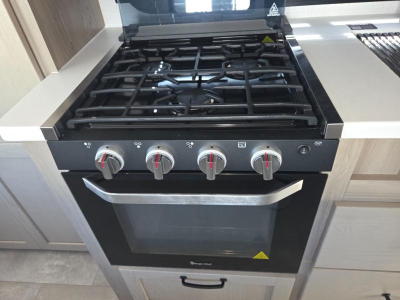 The queen bed offers a comfortable night’s sleep, while the wardrobe provides convenient storage for clothing and personal items, making longer trips more comfortable.