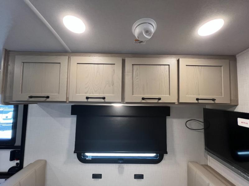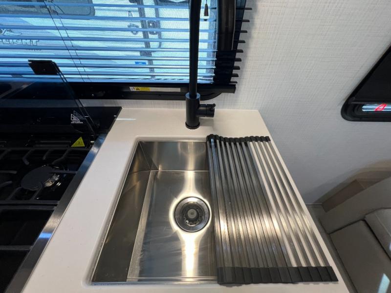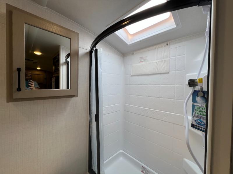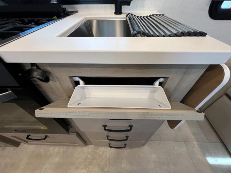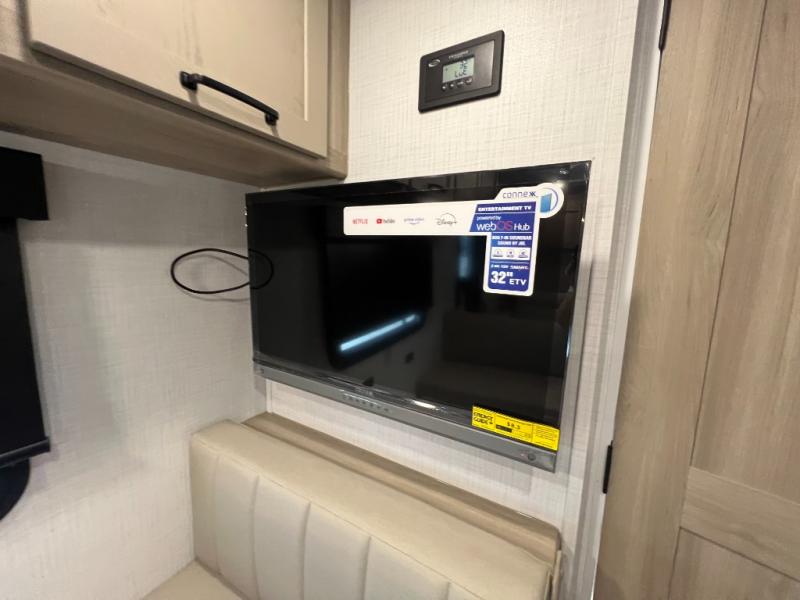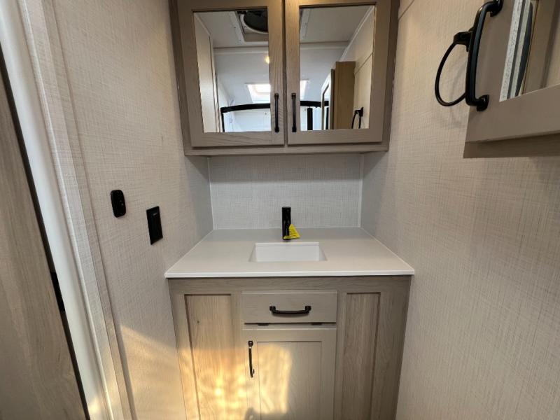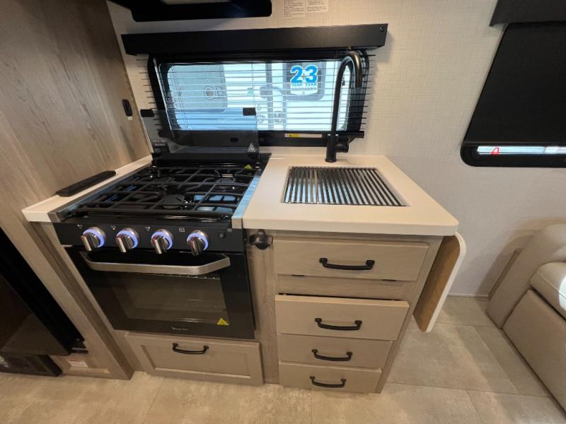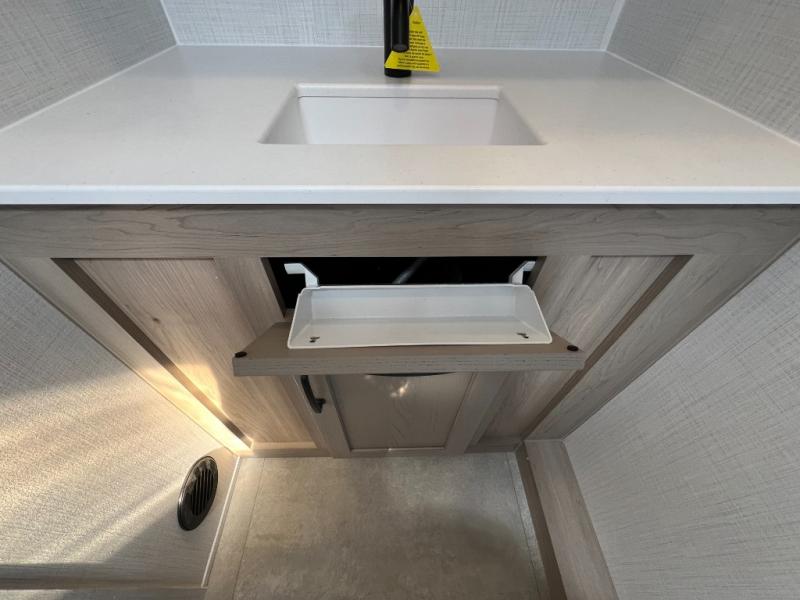 You will love how versatile this travel trailer is thanks to the Murphy bed up front. After you've had a great night's rest, just fold it up to relax on the 72" sofa. This will give the chef more space in the morning to prepare breakfast on the three burner cooktop or in the microwave oven. There is a 32" booth dinette to dine at, or you may just want to take your plate outdoors under the 14' power awning. The full rear bath includes a large linen closet to store clean towels and there is a Showermiser Water Saver you are sure to appreciate. You will appreciate a pass-through storage, plus additional exterior storage so you can bring along hiking gear, water tubes, and fishing poles! The optional Power Package available on this model includes three 200W solar panels, an 11,000 BTU Coleman Mach soft start A/C, two smart remotes, and more off-grid features!