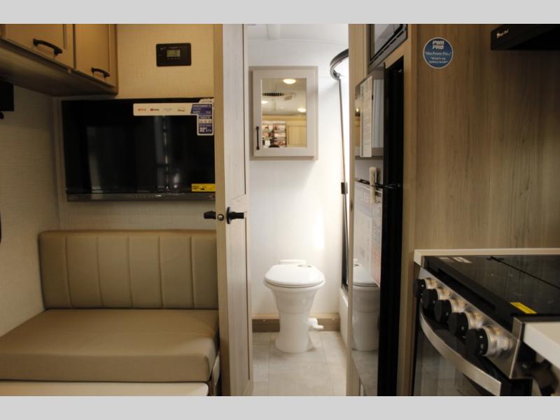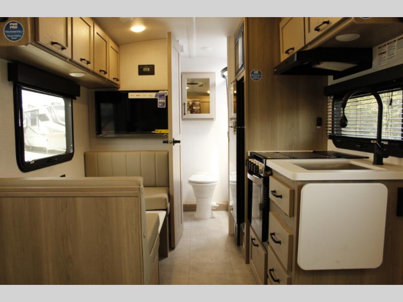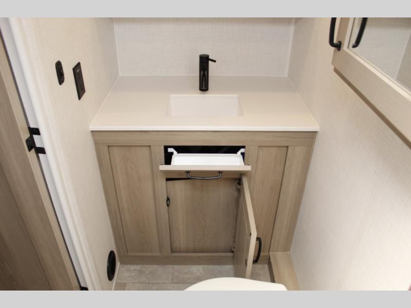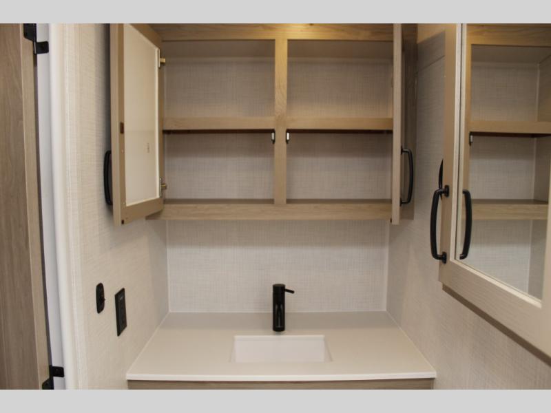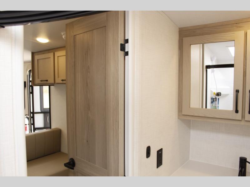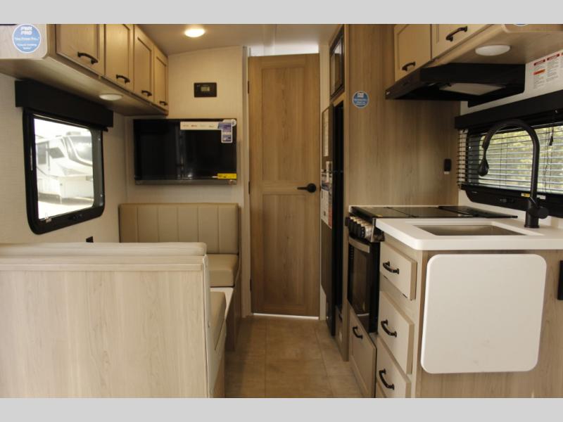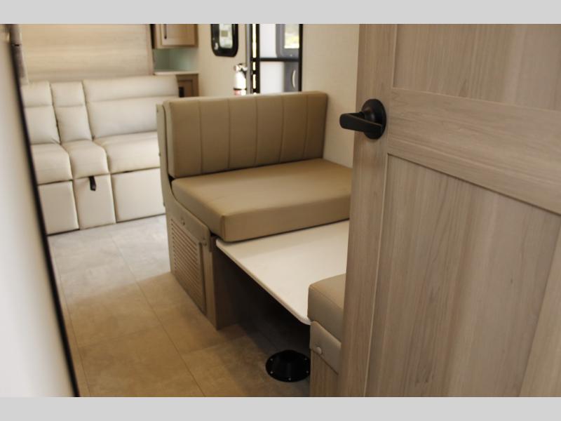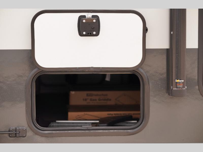 You will love how versatile this travel trailer is thanks to the Murphy bed up front. After you've had a great night's rest, just fold it up to relax on the 72" sofa. This will give the chef more space in the morning to prepare breakfast on the three burner cooktop or in the microwave oven. There is a 32" booth dinette to dine at, or you may just want to take your plate outdoors under the 14' power awning. The full rear bath includes a large linen closet to store clean towels and there is a Showermiser Water Saver you are sure to appreciate. You will appreciate a pass-through storage, plus additional exterior storage so you can bring along hiking gear, water tubes, and fishing poles! The optional Power Package available on this model includes three 200W solar panels, an 11,000 BTU Coleman Mach soft start A/C, two smart remotes, and more off-grid features!