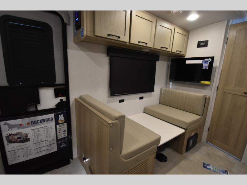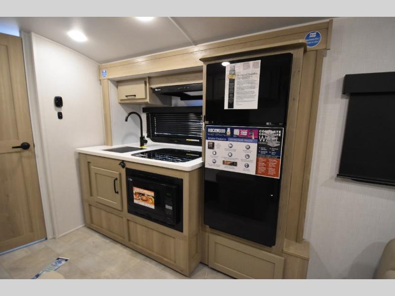 With any Rockwood GEO Pro travel trailer by Forest River you will enjoy easy towing, durable construction, and off-road capabilities with larger 15" tires and a lift kit! Each model is constructed with complete composite wall construction for added strength and durability, and the torsion axle, Rubber-Ryde suspension will make towing easier than ever. Inside, you'll find sleek roller shades for added privacy, a 12V refrigerator and a microwave, plus a 20,000 BTU furnace to keep you warm during the colder camping months.