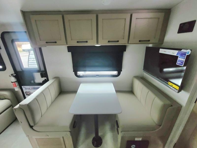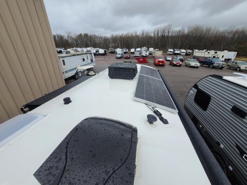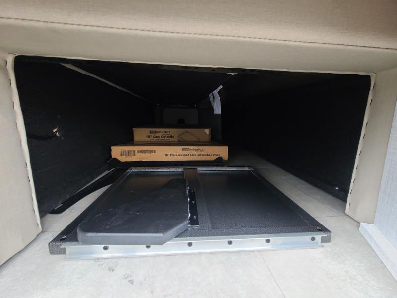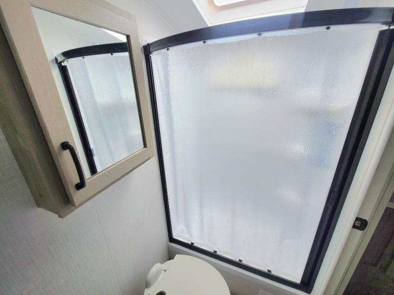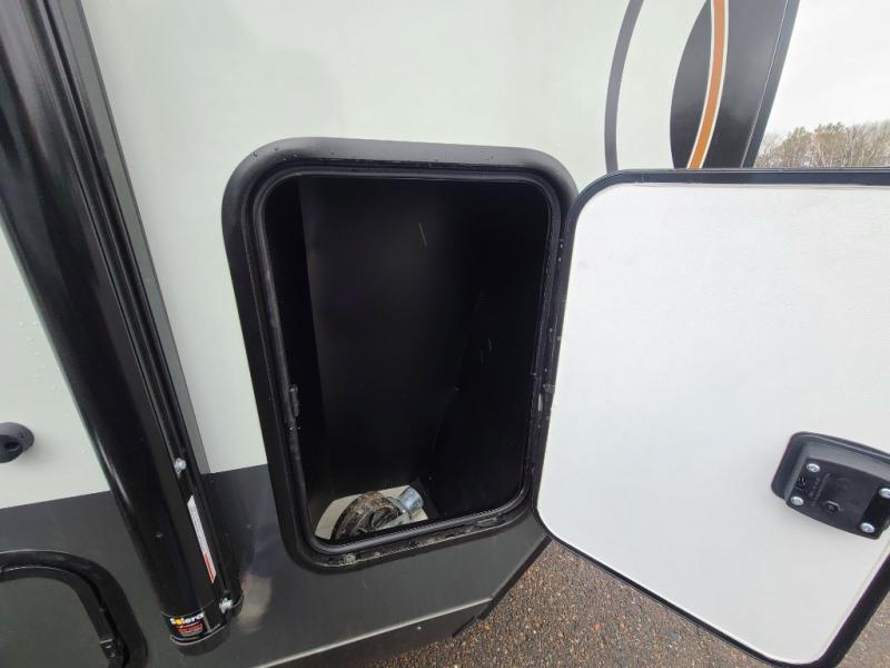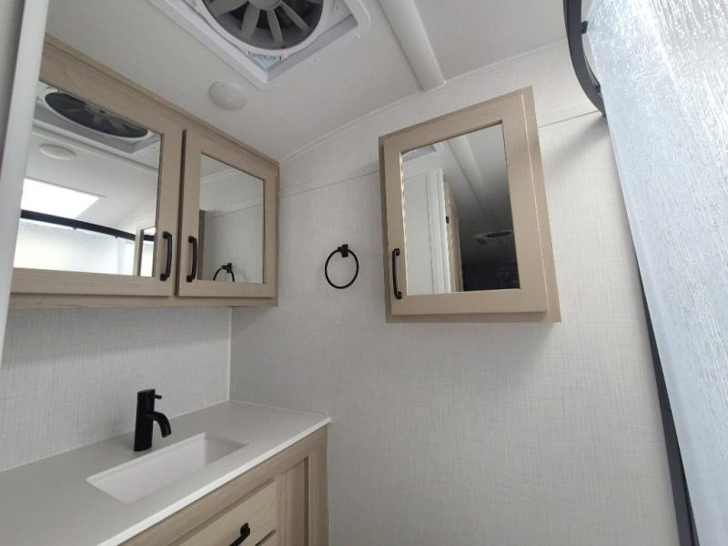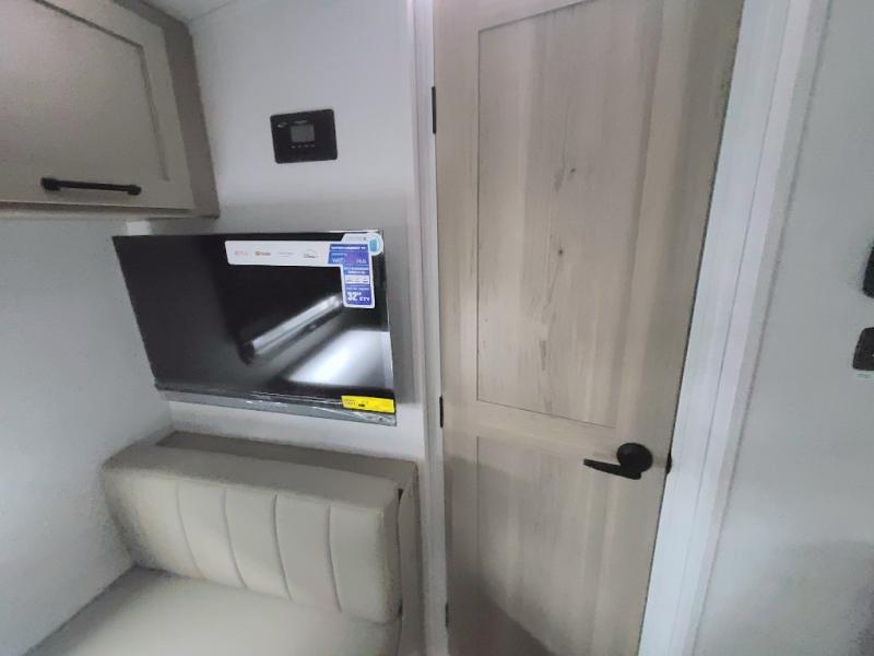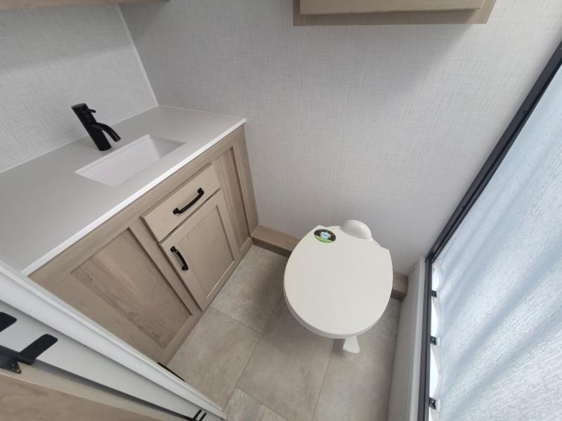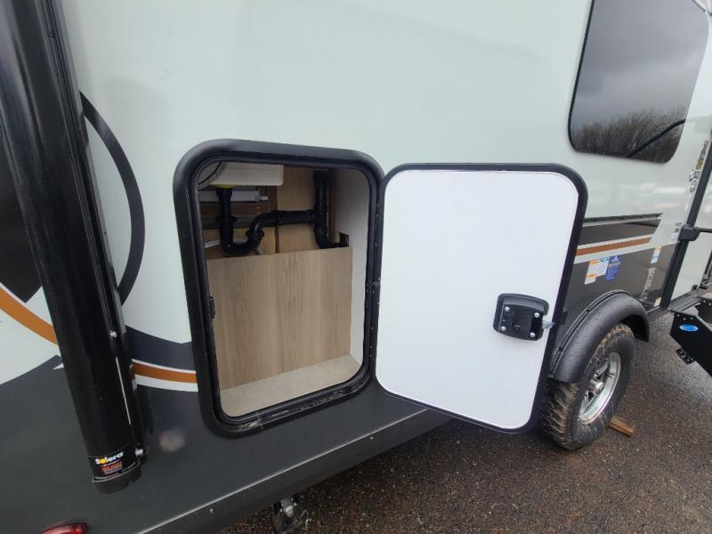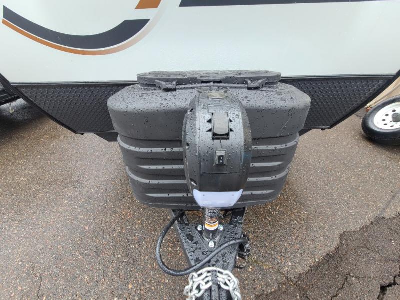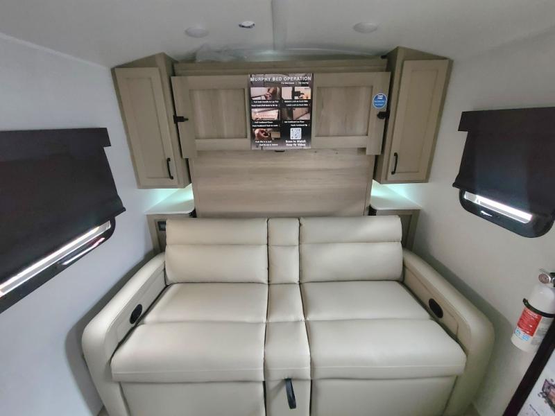 Comfortable sleeping space, convenient seating space, and a full rear bath makes this couple's trailer the one! You will love being able to relax on the sofa during the day, and sleep on the Murphy bed at night. There is a single slide out that will provide you more space to move around or cook meals, and the full bath includes a large shower so you won't feel cramped. If it's a rainy day you can watch movies on the 32" 12V TV, and if it's nice out, sit under the 14' power awning and cook lunch on the outside griddle. The possibilities are endless with this couple's trailer! The optional Power Package available on this model gives you the option to go off-grid for even longer amounts of time!