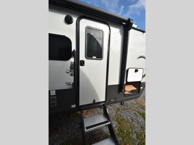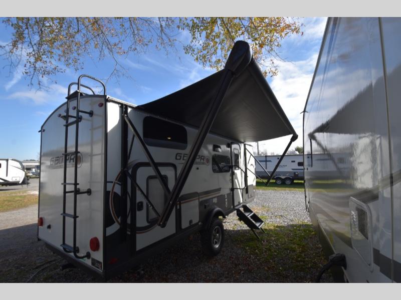 With any Rockwood GEO Pro travel trailer by Forest River you will enjoy easy towing, durable construction, and off-road capabilities with larger 15" tires and a lift kit! Each model is constructed with complete composite wall construction for added strength and durability, and the torsion axle, Rubber-Ryde suspension will make towing easier than ever. Inside, you'll find sleek roller shades for added privacy, a 12V refrigerator and a microwave, plus a 20,000 BTU furnace to keep you warm during the colder camping months.
