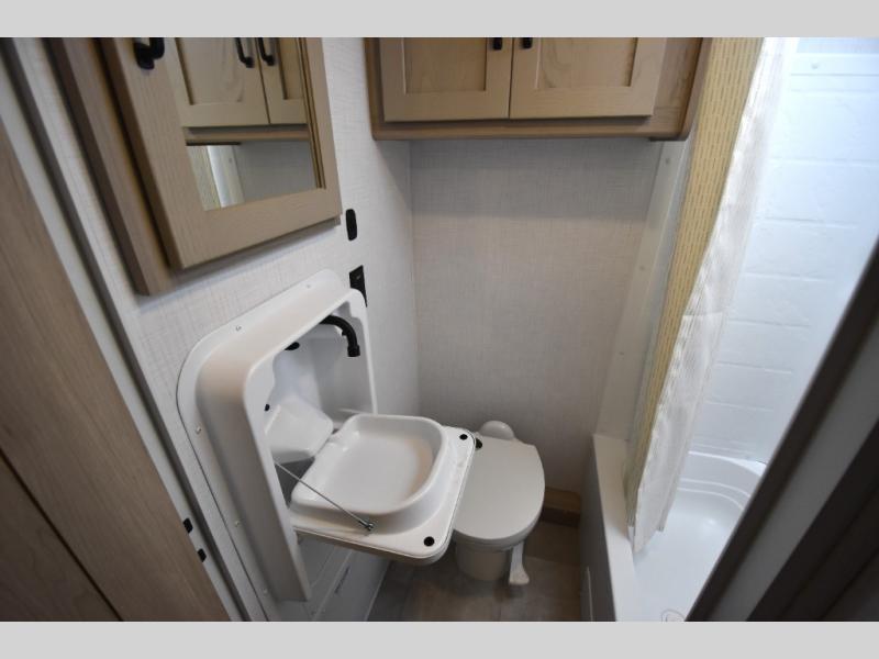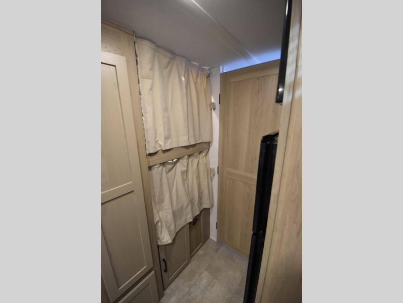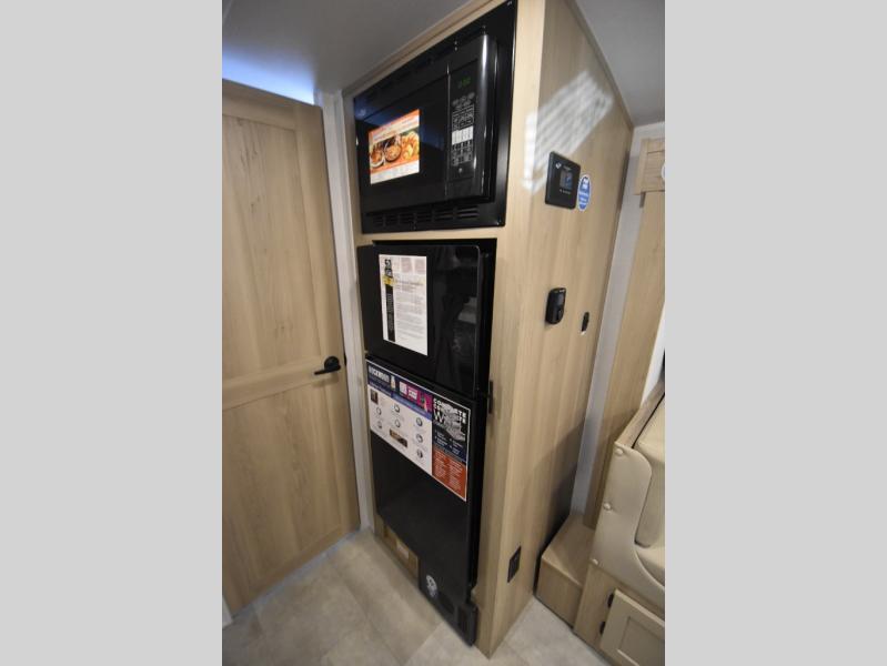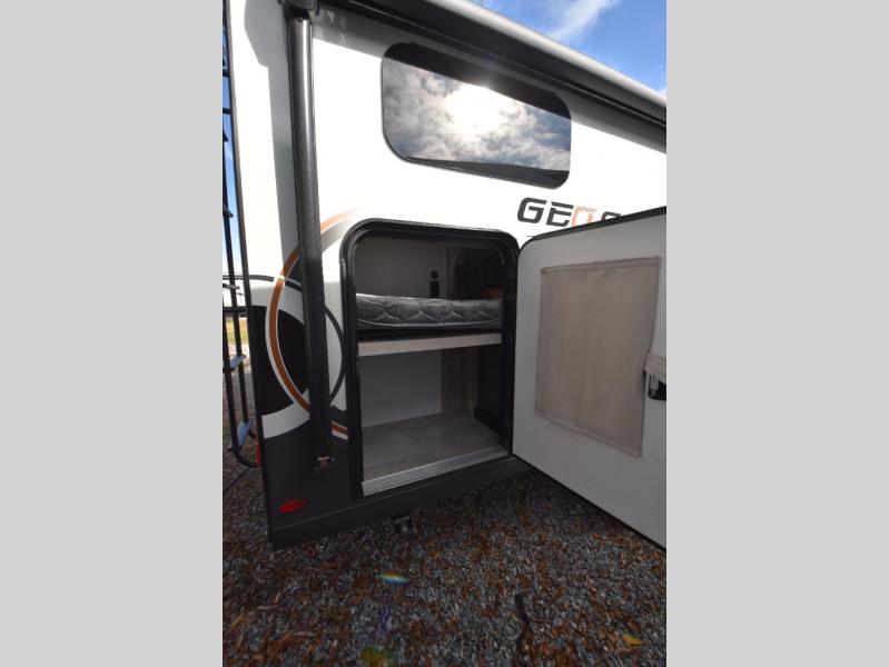 You're going to love camping with your family or friends in this spacious bunk model! The bunk beds will be perfect for little ones, while you take the front full-size bed. There is also a 44" booth dinette within the slide out for additional sleeping and seating space. The kitchen includes everything the chef will need to prepare meals each day, including a recessed cooktop, microwave oven, and a 12V refrigerator for perishables. If the weather is nice, you may just find the chef outdoors cooking on the outside griddle under the 14' power awning. And check out the exterior bike door that will be perfect for bikes, luggage, or extra camp gear. The optional Power Package available on this model includes three 200W solar panels, a 460 Ah Mastervolt MLI lithium-ion battery, two smart remotes, and more off-grid features!