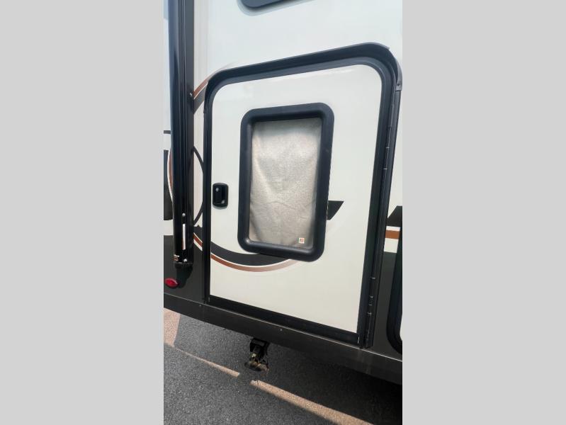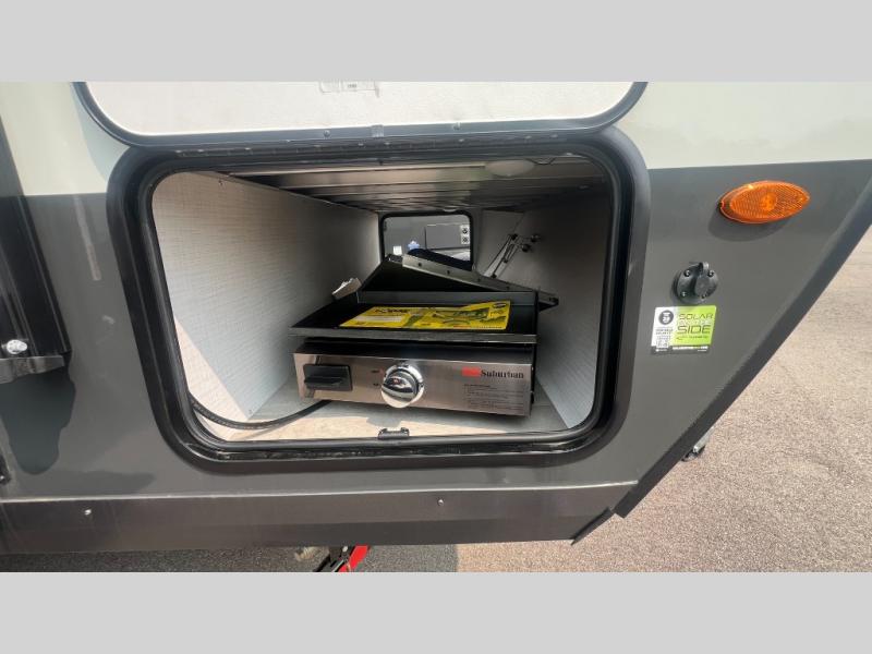 You're going to love camping with your family or friends in this spacious bunk model! The bunk beds will be perfect for little ones, while you take the front full-size bed. There is also a 44" booth dinette within the slide out for additional sleeping and seating space. The kitchen includes everything the chef will need to prepare meals each day, including a recessed cooktop, microwave oven, and a 12V refrigerator for perishables. If the weather is nice, you may just find the chef outdoors cooking on the outside griddle under the 14' power awning. And check out the exterior bike door that will be perfect for bikes, luggage, or extra camp gear. The optional Power Package available on this model includes three 200W solar panels, a 460 Ah Mastervolt MLI lithium-ion battery, two smart remotes, and more off-grid features!