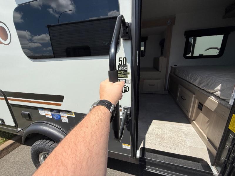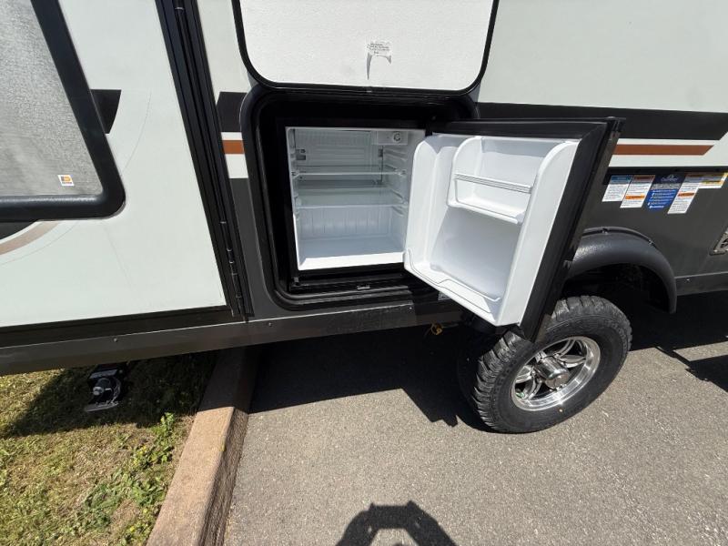 With any Rockwood GEO Pro travel trailer by Forest River you will enjoy easy towing, durable construction, and off-road capabilities with larger 15" tires and a lift kit! Each model is constructed with complete composite wall construction for added strength and durability, and the torsion axle, Rubber-Ryde suspension will make towing easier than ever. Inside, you'll find sleek roller shades for added privacy, a 12V refrigerator and a microwave, plus a 20,000 BTU furnace to keep you warm during the colder camping months.