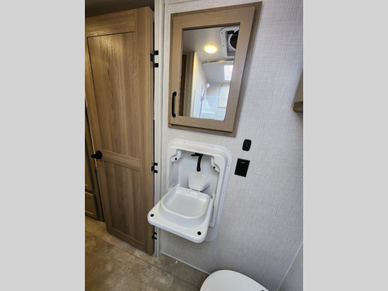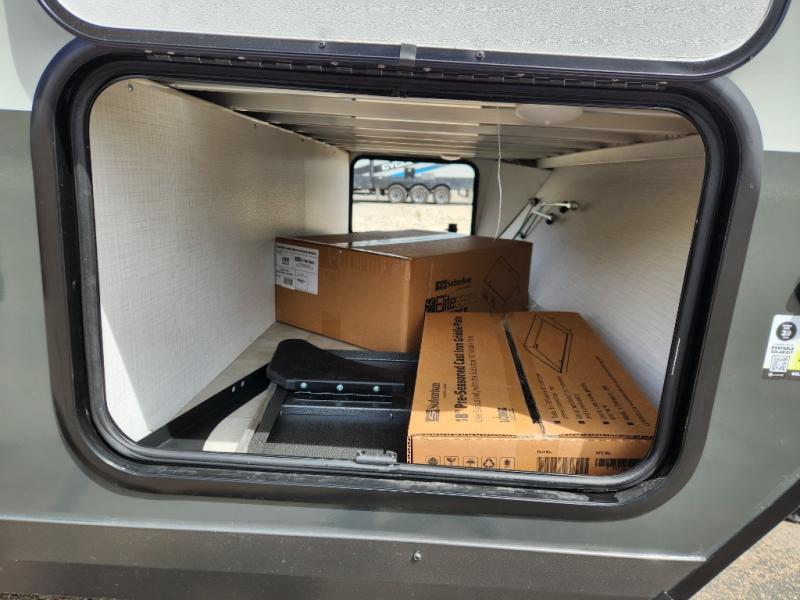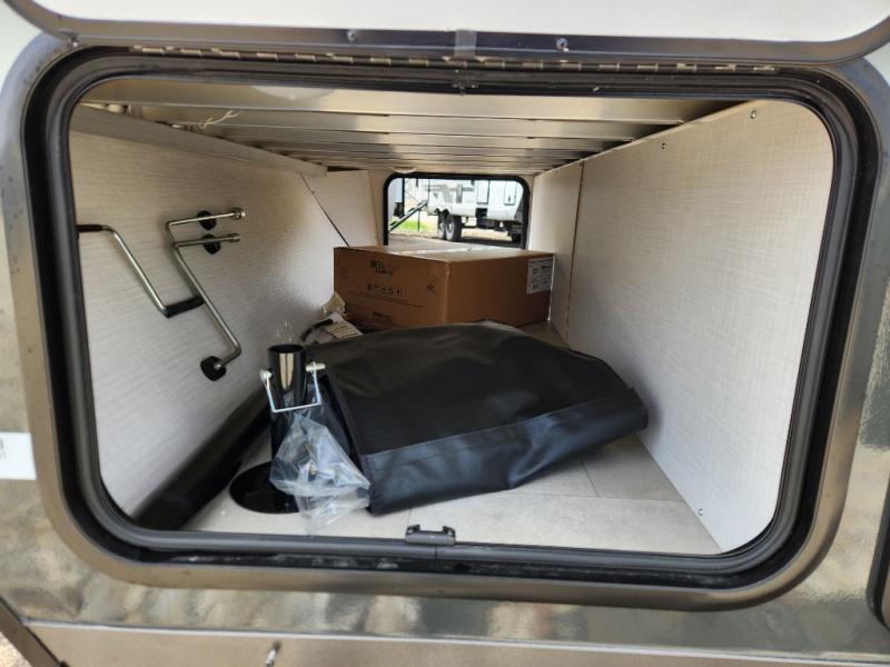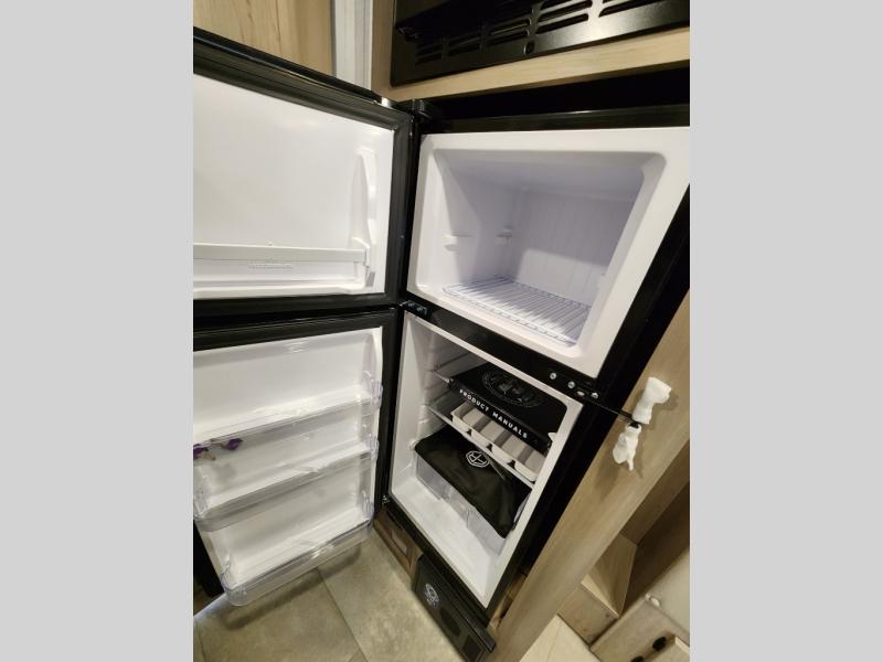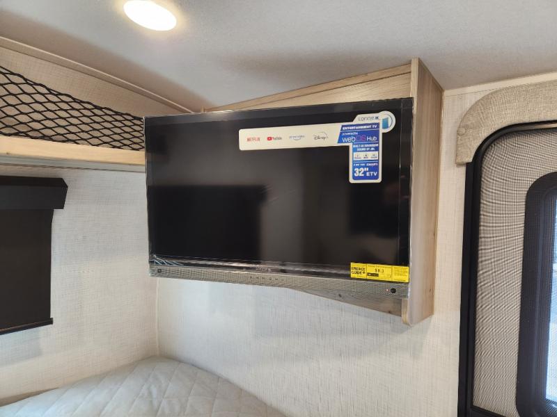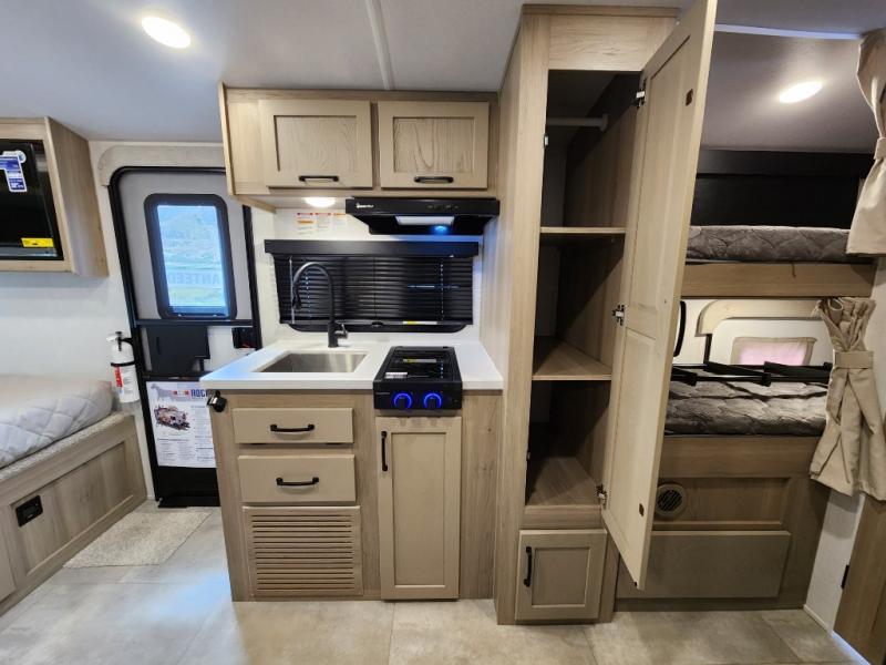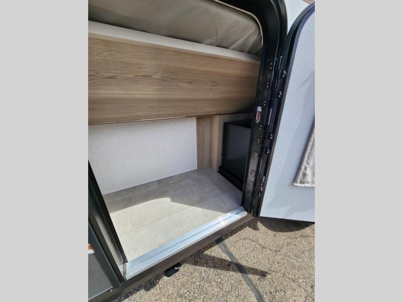 You're going to love camping with your family or friends in this spacious bunk model! The bunk beds will be perfect for little ones, while you take the front full-size bed. There is also a 44" booth dinette within the slide out for additional sleeping and seating space. The kitchen includes everything the chef will need to prepare meals each day, including a recessed cooktop, microwave oven, and a 12V refrigerator for perishables. If the weather is nice, you may just find the chef outdoors cooking on the outside griddle under the 14' power awning. And check out the exterior bike door that will be perfect for bikes, luggage, or extra camp gear. The optional Power Package available on this model includes three 200W solar panels, a 460 Ah Mastervolt MLI lithium-ion battery, two smart remotes, and more off-grid features!