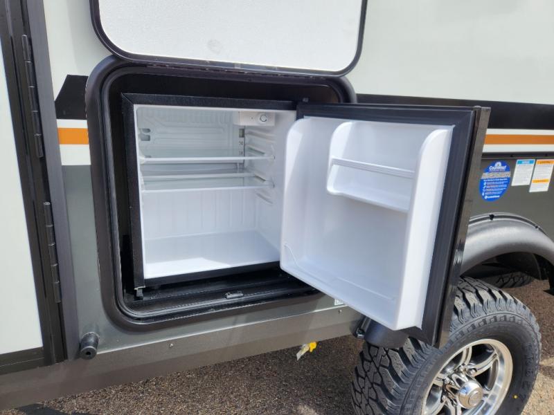 With any Rockwood GEO Pro travel trailer by Forest River you will enjoy easy towing, durable construction, and off-road capabilities with larger 15" tires and a lift kit! Each model is constructed with complete composite wall construction for added strength and durability, and the torsion axle, Rubber-Ryde suspension will make towing easier than ever. Inside, you'll find sleek roller shades for added privacy, a 12V refrigerator and a microwave, plus a 20,000 BTU furnace to keep you warm during the colder camping months.