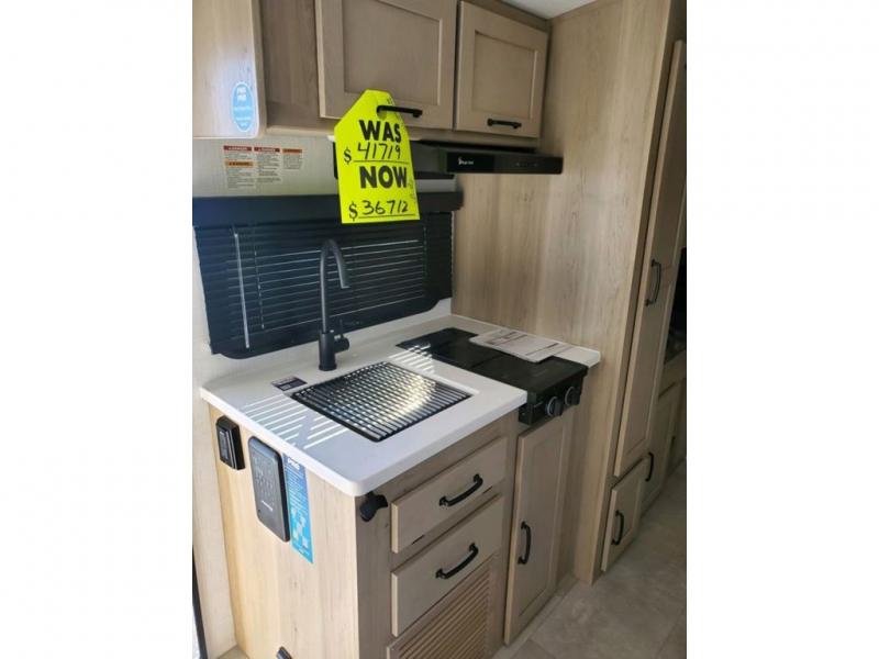 With any Rockwood GEO Pro travel trailer by Forest River you will enjoy easy towing, durable construction, and off-road capabilities with larger 15" tires and a lift kit! Each model is constructed with complete composite wall construction for added strength and durability, and the torsion axle, Rubber-Ryde suspension will make towing easier than ever. Inside, you'll find sleek roller shades for added privacy, a 12V refrigerator and a microwave, plus a 20,000 BTU furnace to keep you warm during the colder camping months.