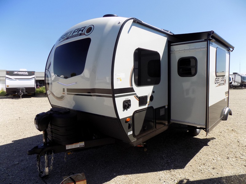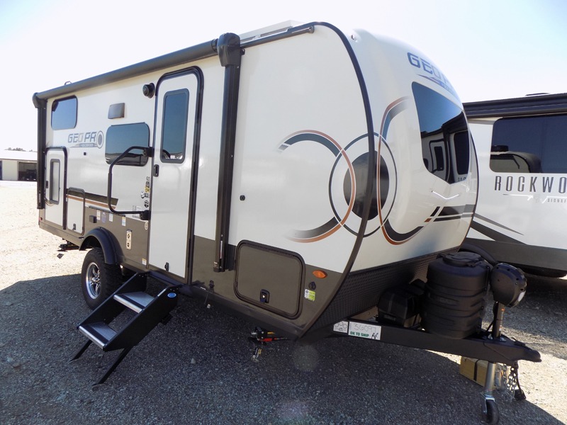 With any Rockwood GEO Pro travel trailer by Forest River you will enjoy easy towing, durable construction, and off-road capabilities with larger 15" tires and a lift kit! Each model is constructed with complete composite wall construction for added strength and durability, and the torsion axle, Rubber-Ryde suspension will make towing easier than ever. Inside, you'll find sleek roller shades for added privacy, a 12V refrigerator and a microwave, plus a 20,000 BTU furnace to keep you warm during the colder camping months.