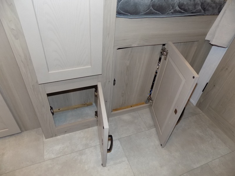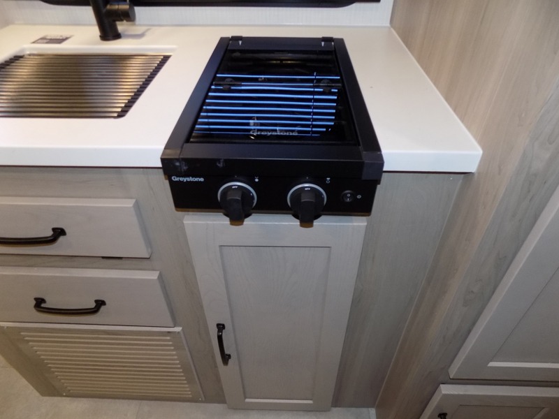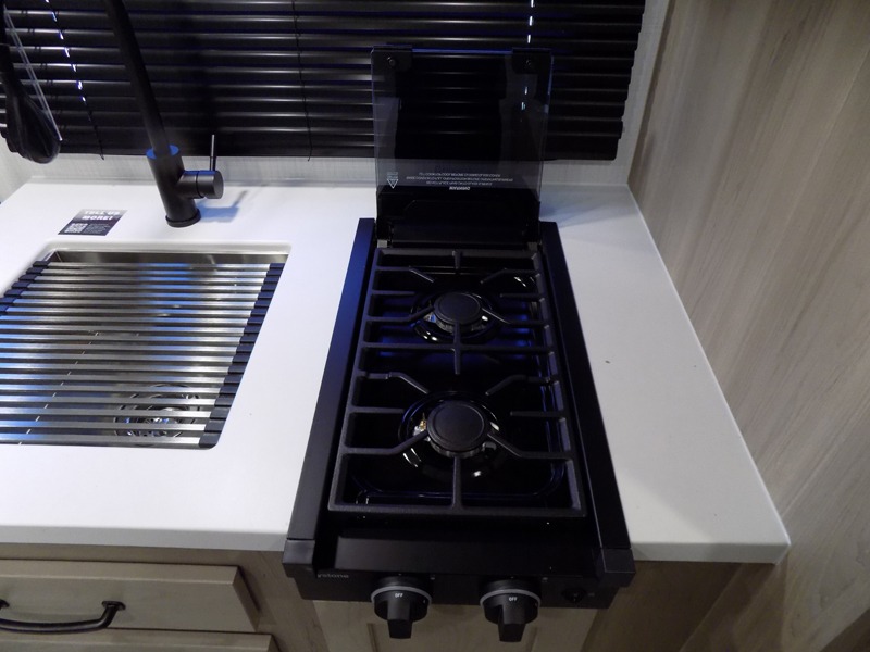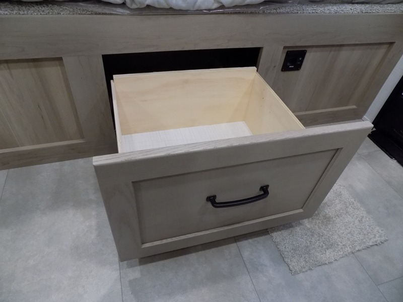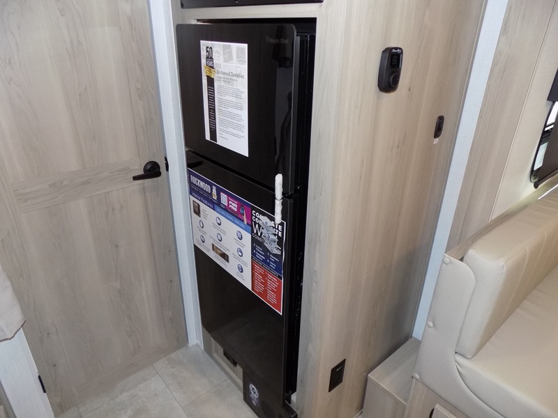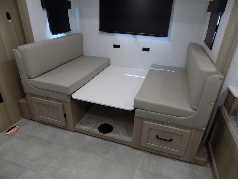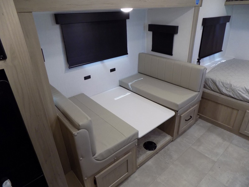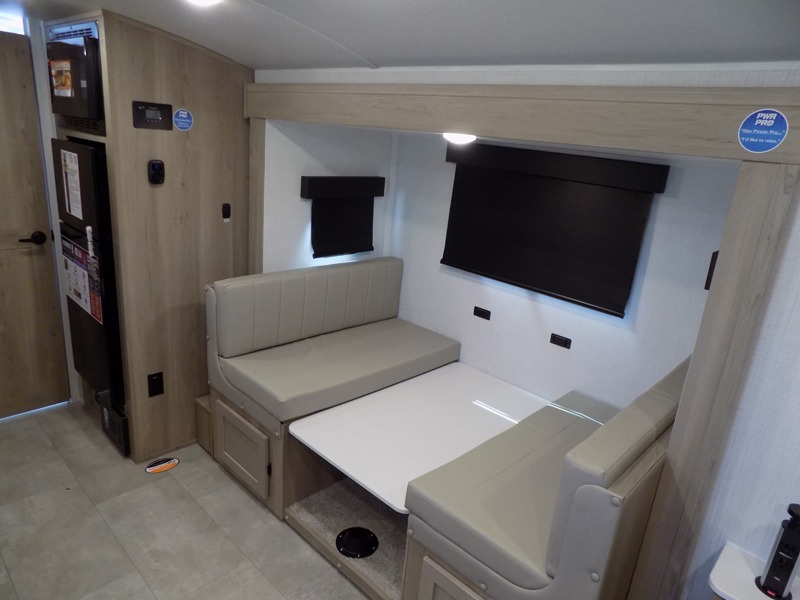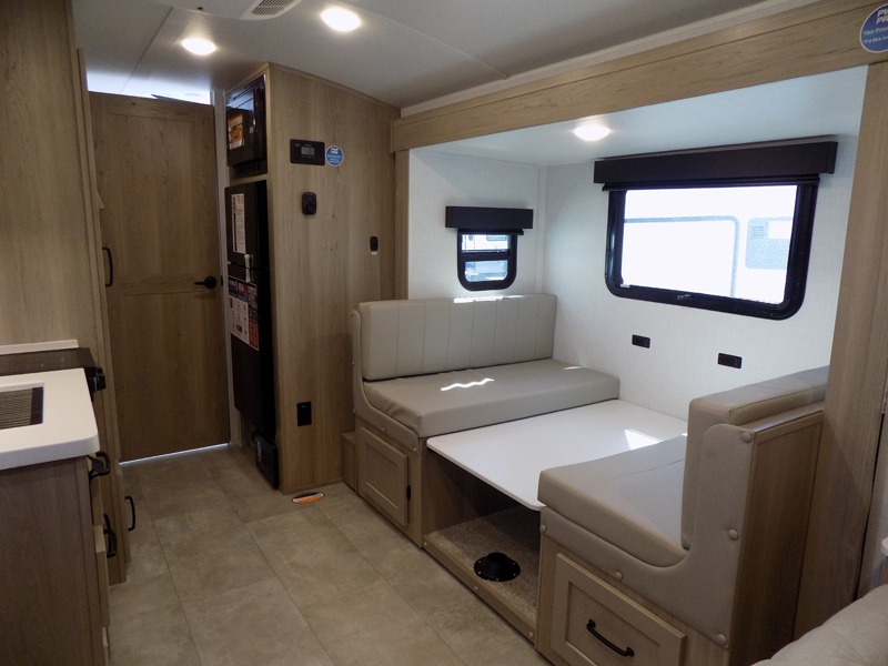 You're going to love camping with your family or friends in this spacious bunk model! The bunk beds will be perfect for little ones, while you take the front full-size bed. There is also a 44" booth dinette within the slide out for additional sleeping and seating space. The kitchen includes everything the chef will need to prepare meals each day, including a recessed cooktop, microwave oven, and a 12V refrigerator for perishables. If the weather is nice, you may just find the chef outdoors cooking on the outside griddle under the 14' power awning. And check out the exterior bike door that will be perfect for bikes, luggage, or extra camp gear. The optional Power Package available on this model includes three 200W solar panels, a 460 Ah Mastervolt MLI lithium-ion battery, two smart remotes, and more off-grid features!