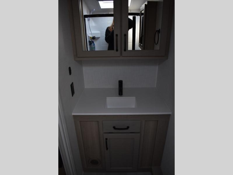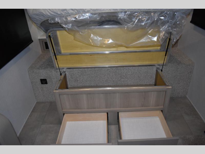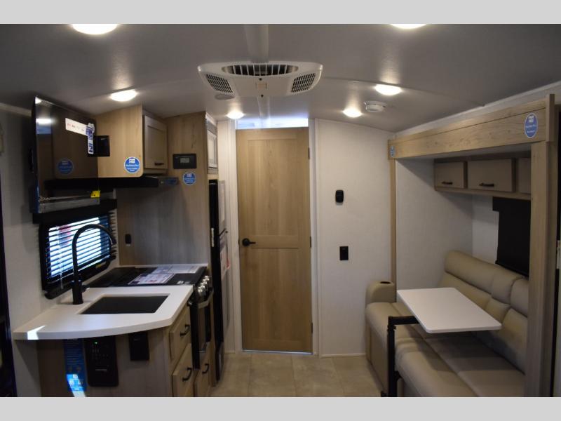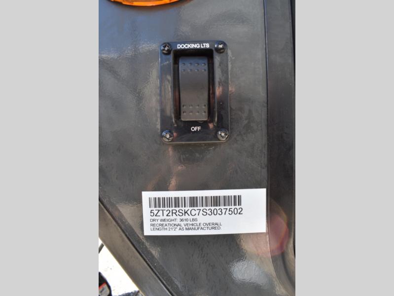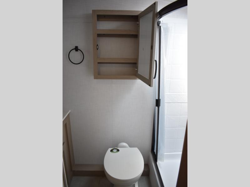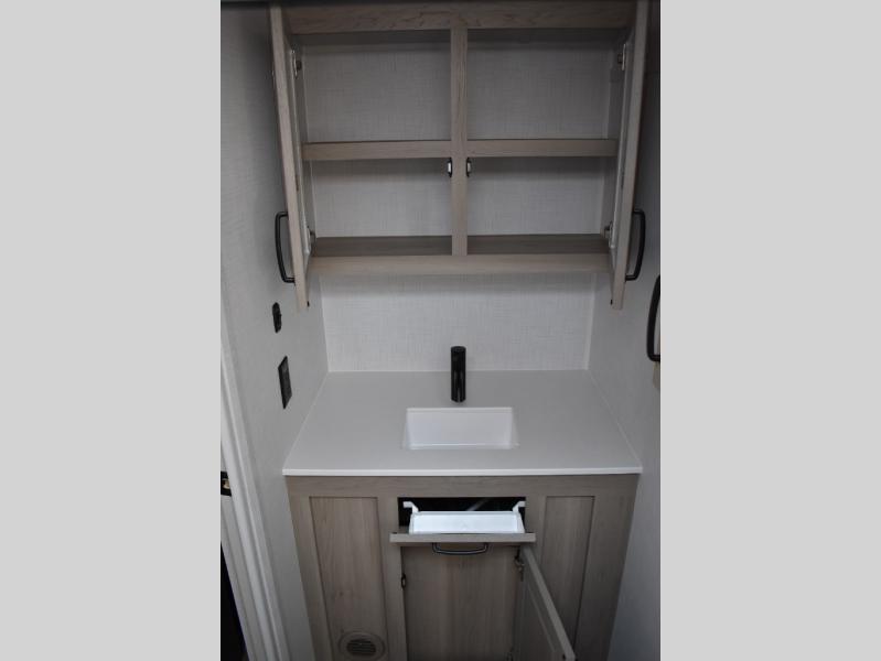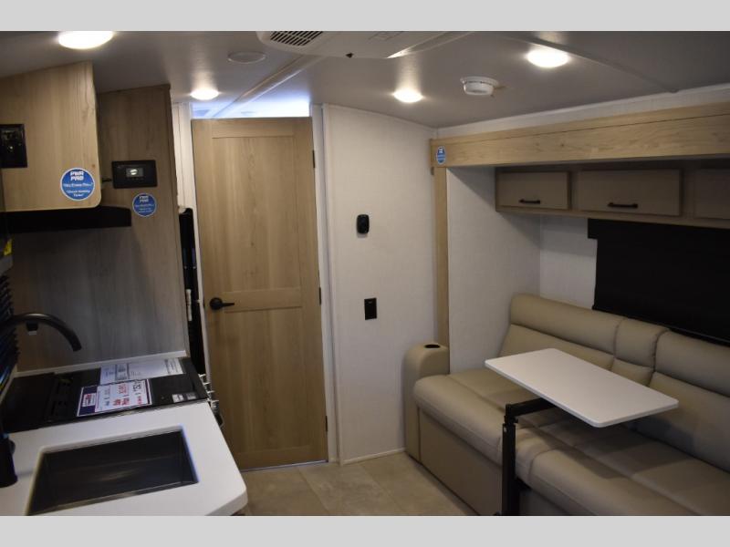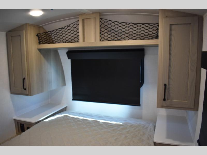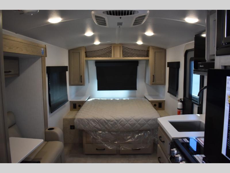 This travel trailer will feel more like home with its front bedroom and walk-around full-size bed. You'll enjoy the 32" 12V TV as you relax on the 72" sofa with a table and cupholders. The full rear bath includes a spacious shower to clean up in each day and there is a linen closet for clean towels. When you're ready to prepare dinner you'll have a three burner cooktop and microwave oven indoors, and a griddle outdoors! And don't forget the exterior storage allows you to bring along beach toys and tackle boxes. The optional Power Package available on this model includes three 200W solar panels, a side solar plug-in, a 3kW 160A inverter, and more off-grid features!