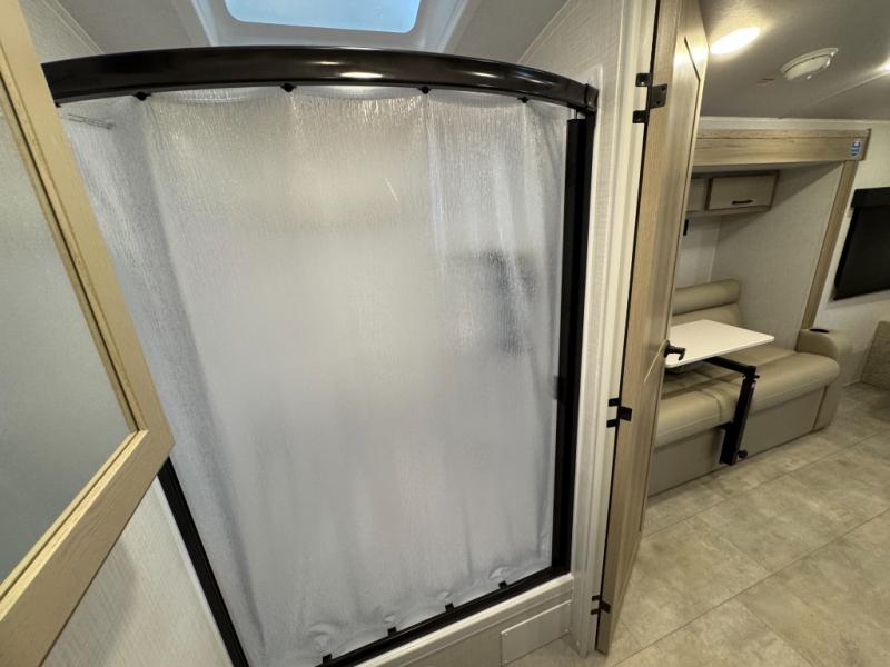 Rear full bath with a spacious shower and linen closet gives you a clean, comfortable experience wherever you camp.