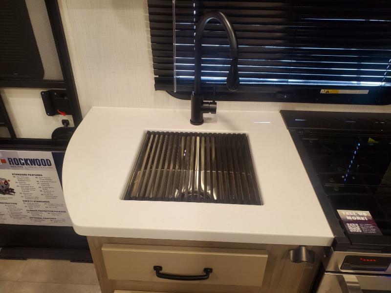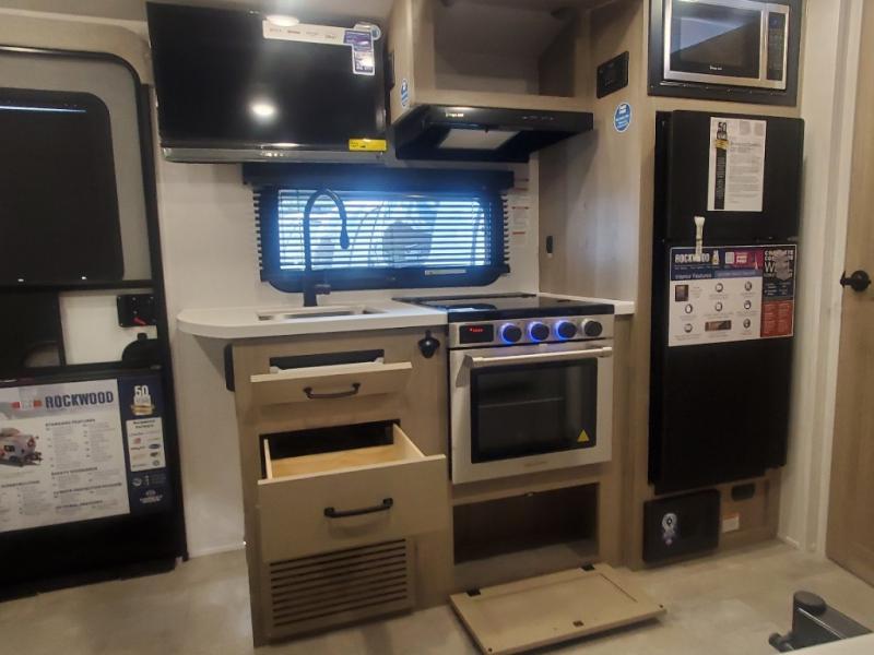 With any Rockwood GEO Pro travel trailer by Forest River you will enjoy easy towing, durable construction, and off-road capabilities with larger 15" tires and a lift kit! Each model is constructed with complete composite wall construction for added strength and durability, and the torsion axle, Rubber-Ryde suspension will make towing easier than ever. Inside, you'll find sleek roller shades for added privacy, a 12V refrigerator and a microwave, plus a 20,000 BTU furnace to keep you warm during the colder camping months.