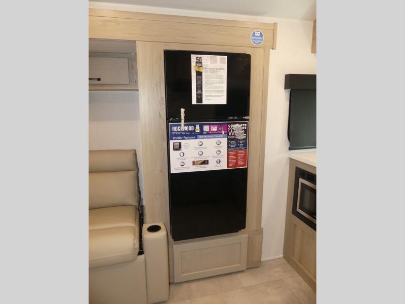 With any Rockwood GEO Pro travel trailer by Forest River you will enjoy easy towing, durable construction, and off-road capabilities with larger 15" tires and a lift kit! Each model is constructed with complete composite wall construction for added strength and durability, and the torsion axle, Rubber-Ryde suspension will make towing easier than ever. Inside, you'll find sleek roller shades for added privacy, a 12V refrigerator and a microwave, plus a 20,000 BTU furnace to keep you warm during the colder camping months.