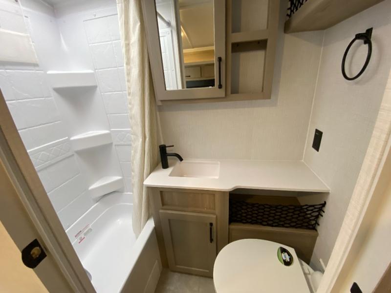 With any Rockwood GEO Pro travel trailer by Forest River you will enjoy easy towing, durable construction, and off-road capabilities with larger 15" tires and a lift kit! Each model is constructed with complete composite wall construction for added strength and durability, and the torsion axle, Rubber-Ryde suspension will make towing easier than ever. Inside, you'll find sleek roller shades for added privacy, a 12V refrigerator and a microwave, plus a 20,000 BTU furnace to keep you warm during the colder camping months.