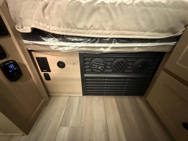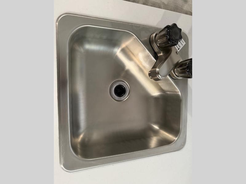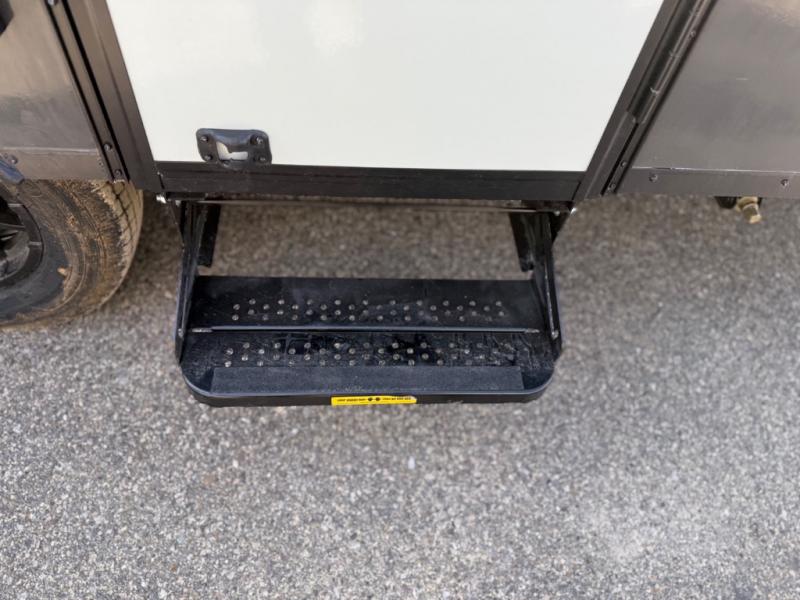 You'll love taking this camper to different campgrounds all summer long! Since there is a 54" x 80" flip-up bed, you won't have to sleep on an air mattress, and there is a front 33" x 80" booth dinette for dining space. An extra guest or two little ones could even use this space to sleep on at night! An exterior griddle provides a way to cook meals each day, and the 12V refrigerator will keep your cold items fresh. You'll also appreciate the front EZ Reach storage trunk for tools, hiking gear, and more!