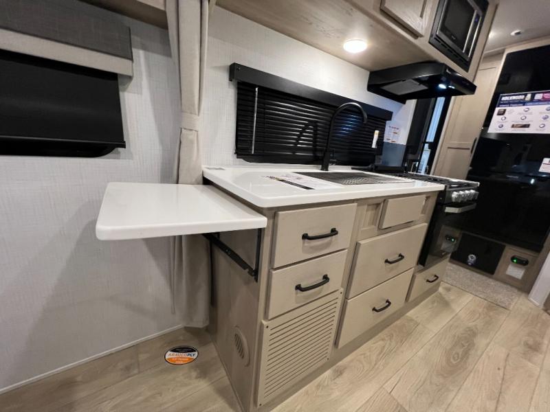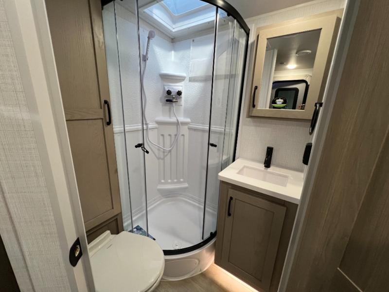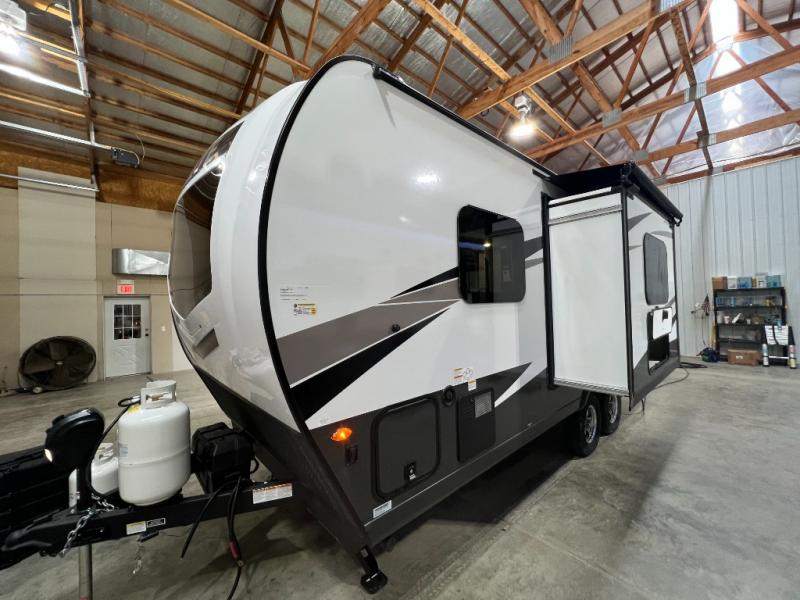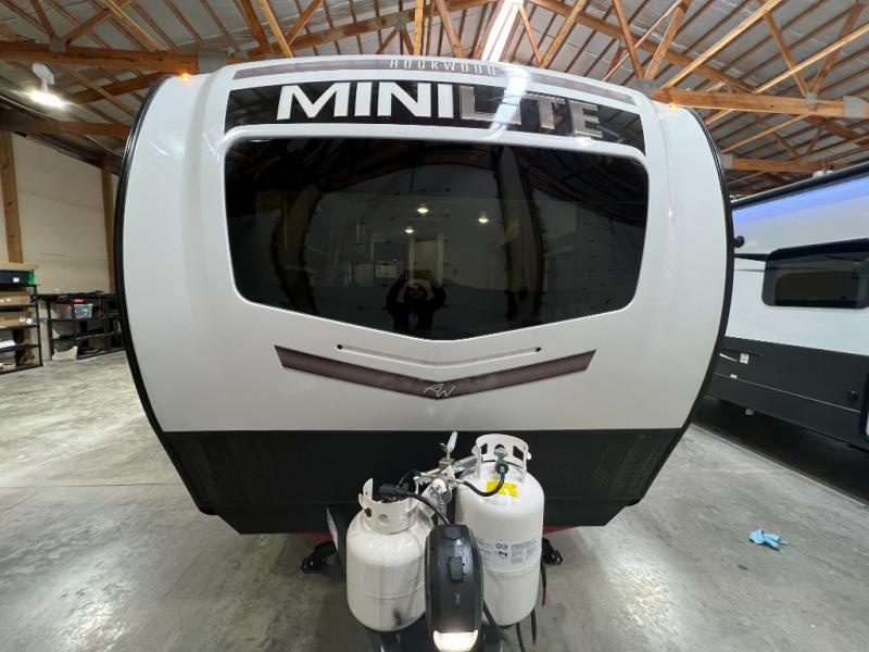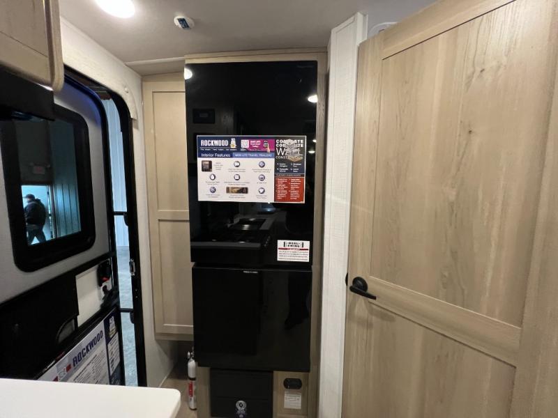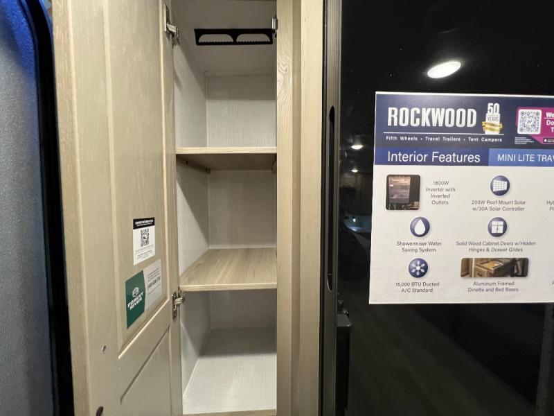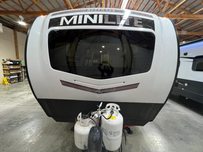 Each Rockwood Mini Lite travel trailer by Forest River is constructed with a fully laminated one-piece walkable roof, sleek frameless windows, and a six-sided full aluminum frame for strength and durability. The 12V thermostatically controlled heated tanks, plus radiant foil in the underbelly and slide out floors will allow you to camp well into the colder months, and the 200W roof solar panel will be perfect for a little off-gridding. Each model includes solid surface kitchen countertops, solid wood cabinet doors, night roller shades, plus many more interior features. Having an AIR 360+ omnidirectional antenna with WiFi prep on board gives you the option to get some work done if it's needed, and the power tongue jack provides hassle-free set up, so you can enjoy more time relaxing!